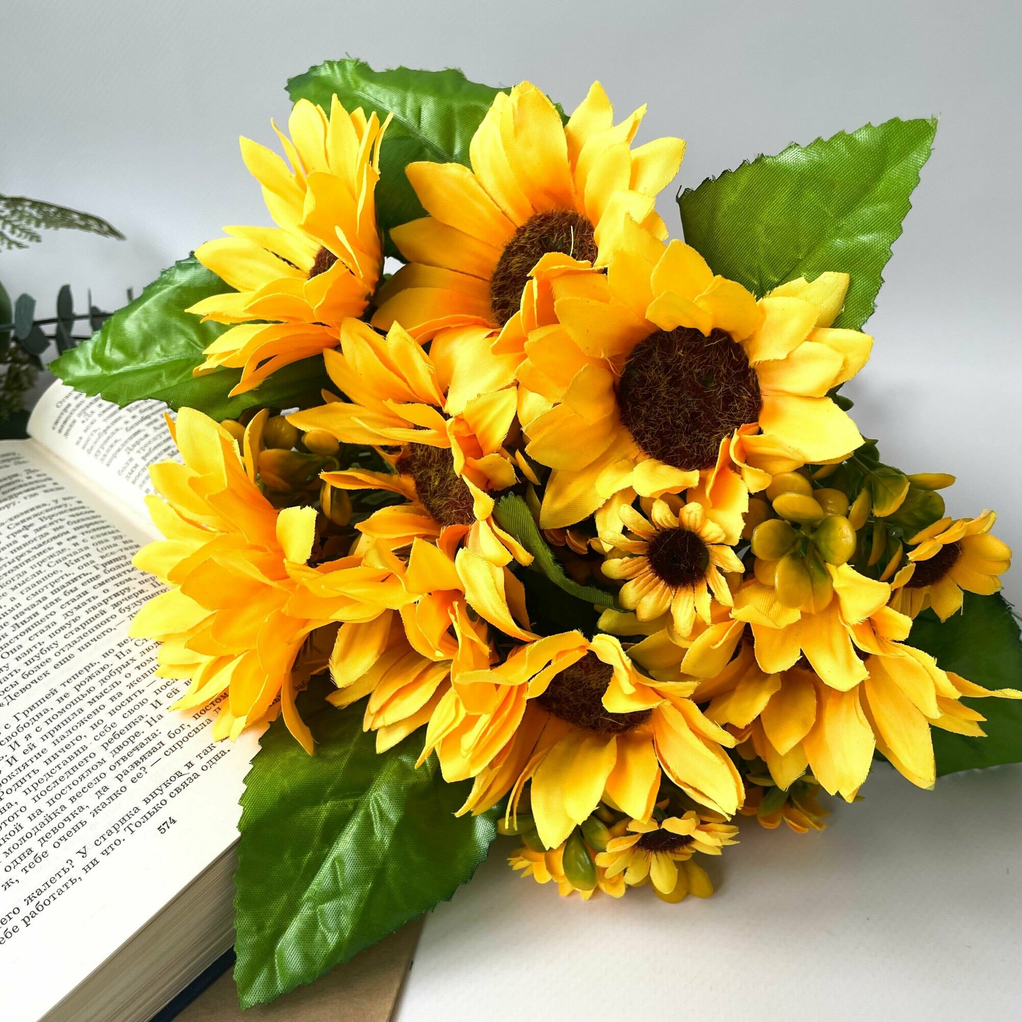 Ниже Вы можете прочитать отзывы на Подсолнухи искусственные, в букете 4 головы 6 бутонов, 31 см, набор 2 шт., ознакомится с подробными характеристиками, посмотреть интересные обзоры и фотографии на Подсолнухи искусственные, в букете 4 головы 6 бутонов, 31 см, набор 2 шт..