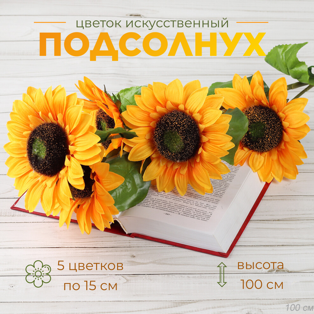 Цветок искусственный Подсолнух для декора интерьера 100 см, 5 цветков, диаметр 15 см интересное: