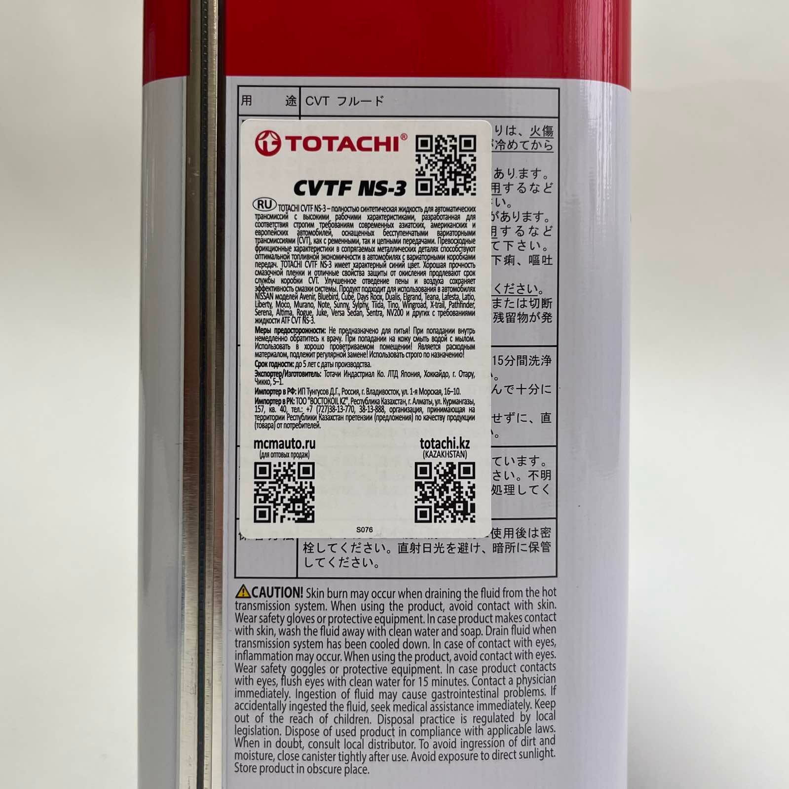 Масло Трансмиссионное Синтетическое Totachi Cvtf Ns-3 4Л TOTACHI арт. 21104