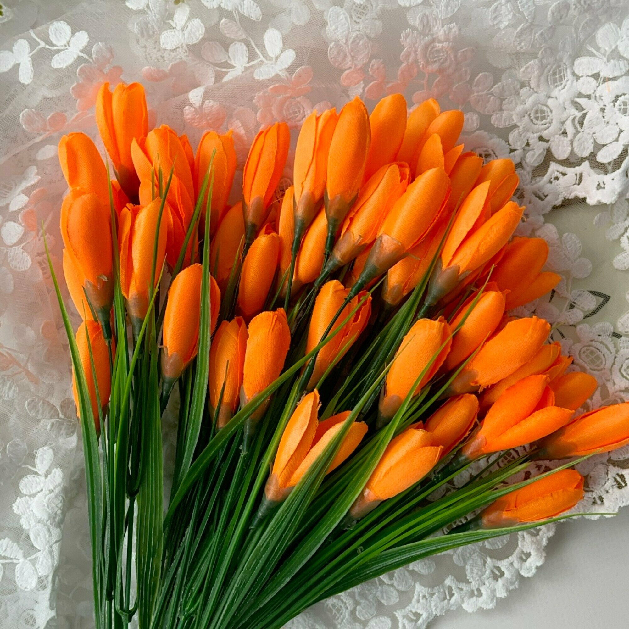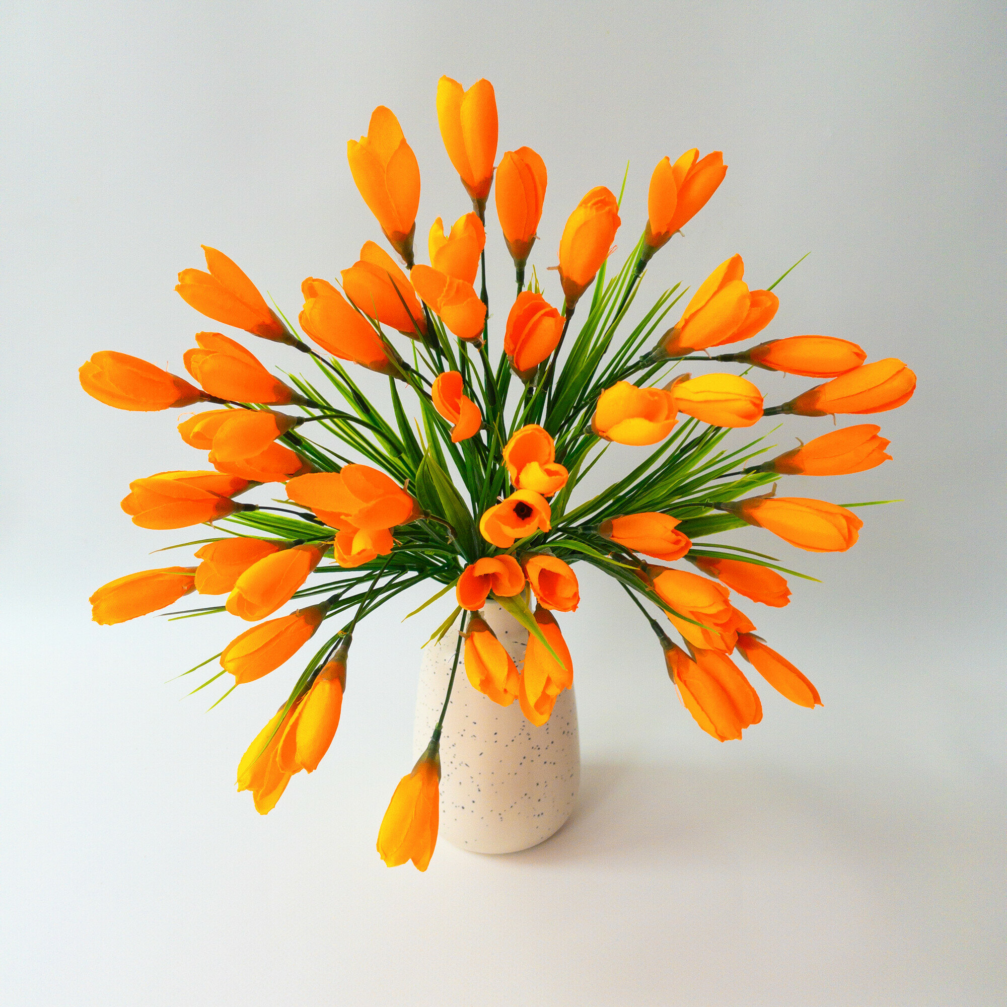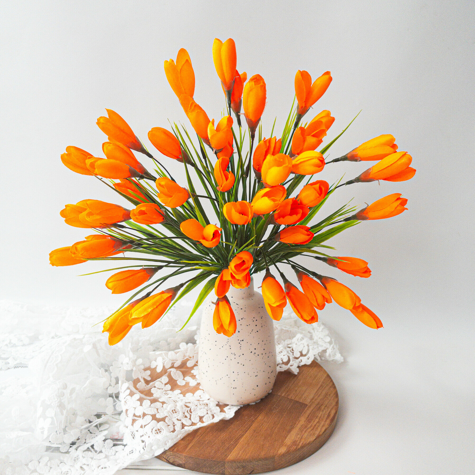 Купить Крокусы-подснежники искусственные цветы для декора, Ярко-оранжевый, набор 3 букета, 38 см