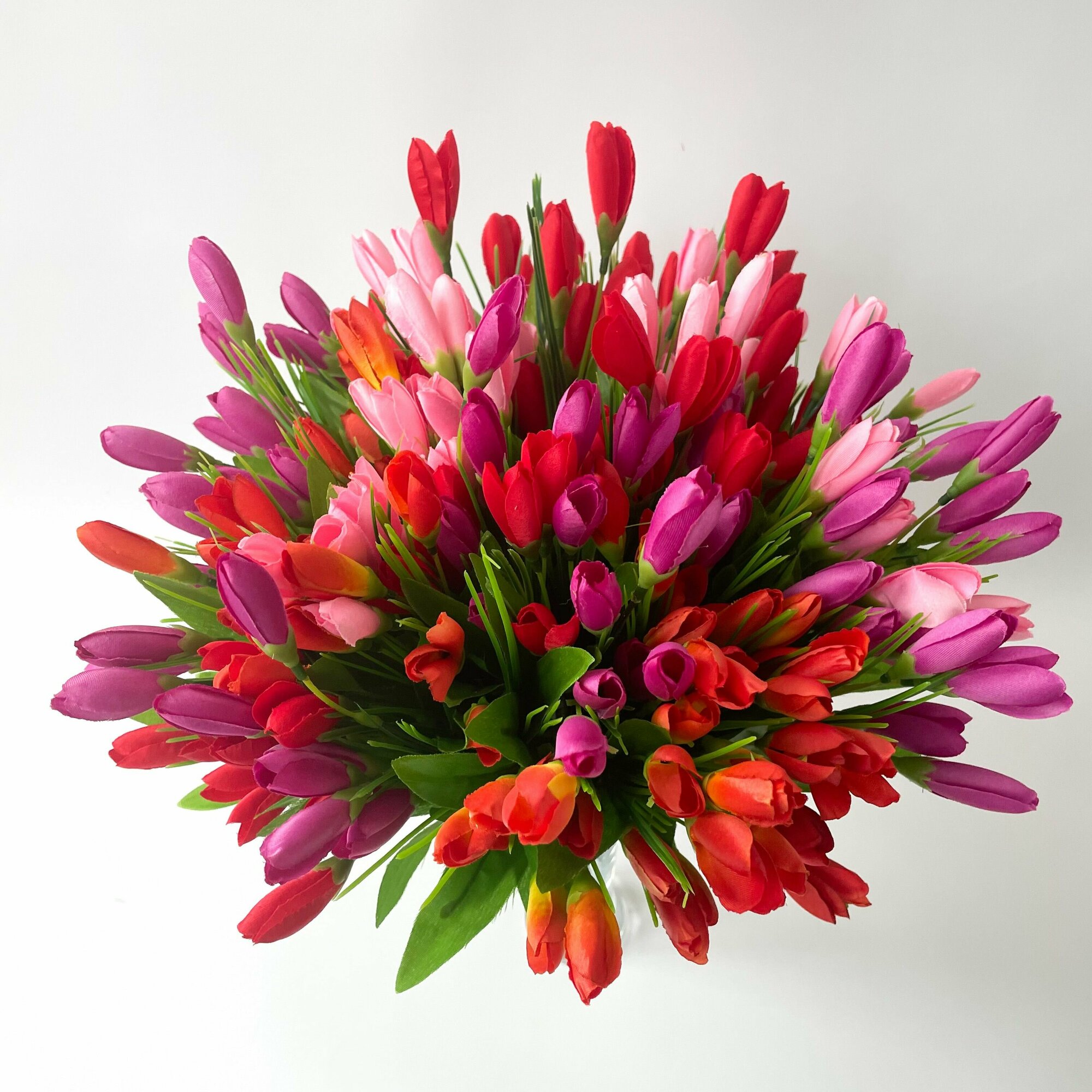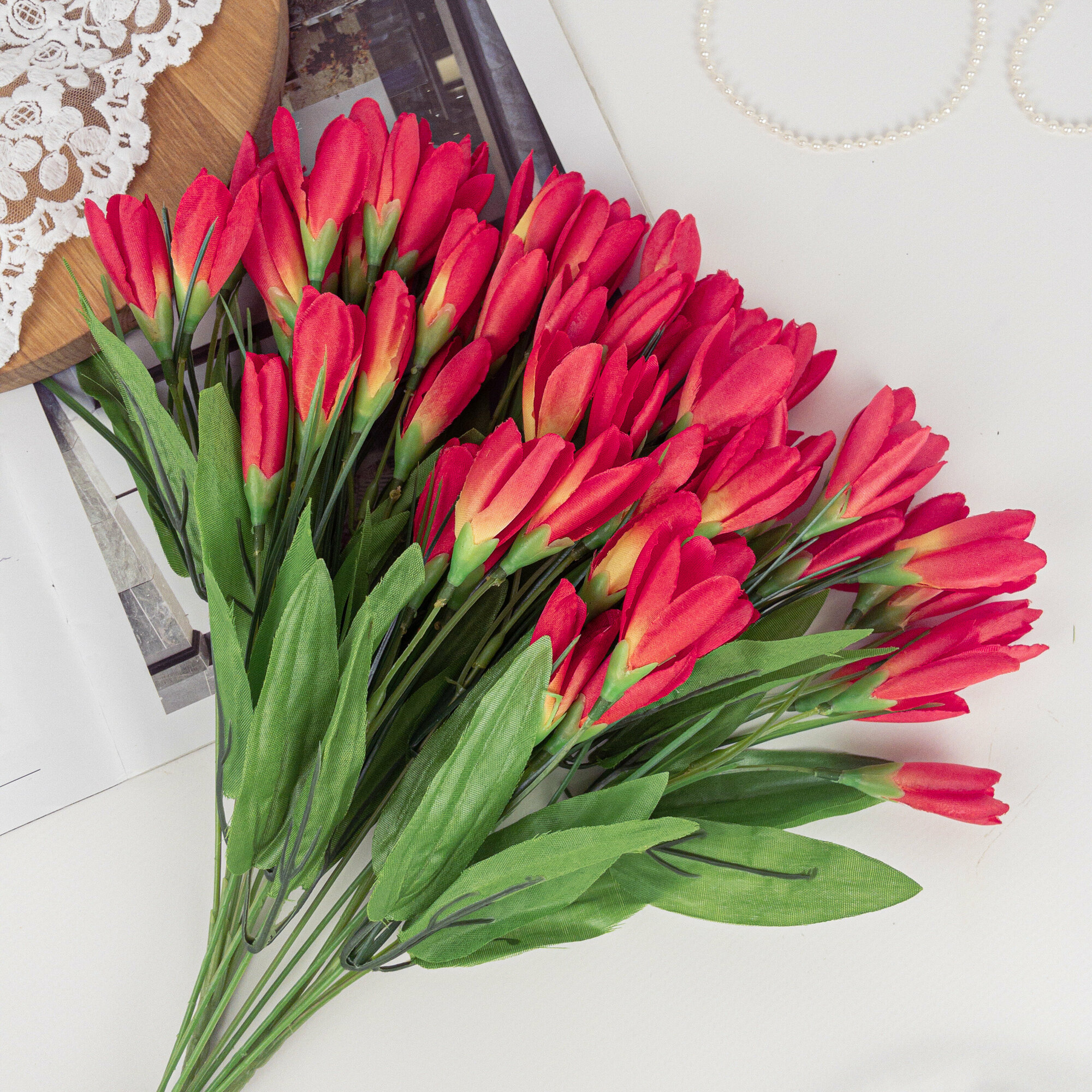 Крокусы-подснежники искусственные, Красно-белый микс, набор 3 букета, 33 см, больше 60 бутонов в наборе
