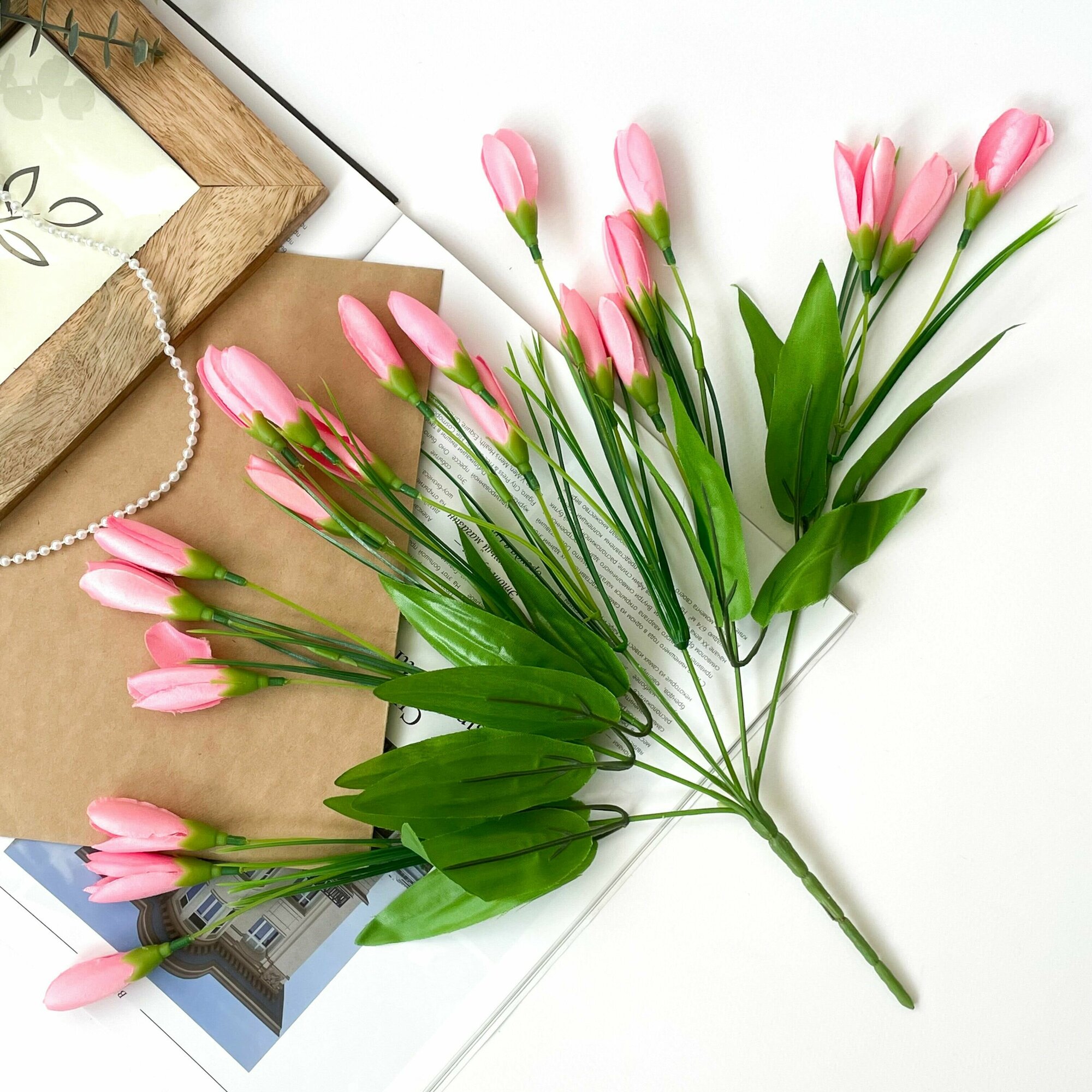 Крокусы искусственные, Розовые, 55 см, набор 3 ветки.