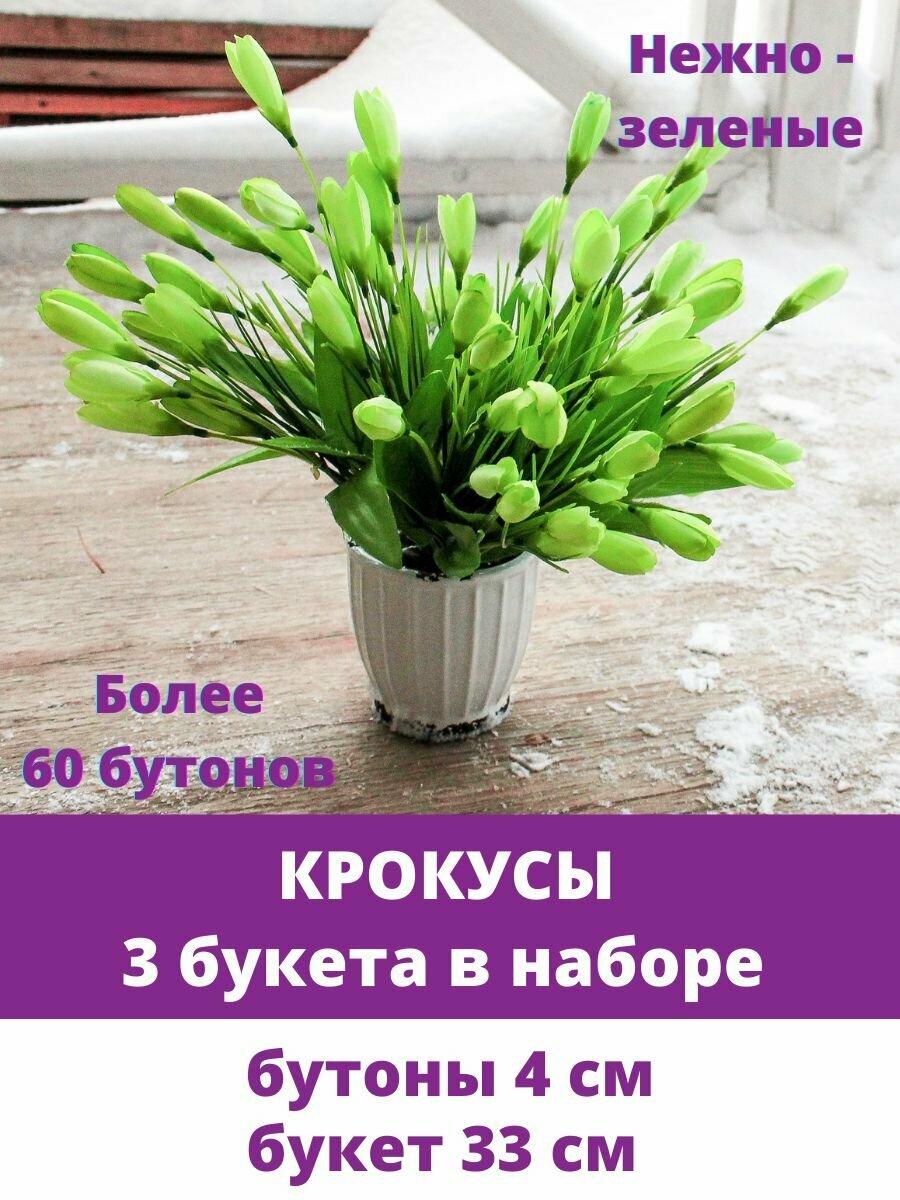 Купить Крокусы-подснежники искусственные, нежно-зеленые, набор 3 букета, 33 см