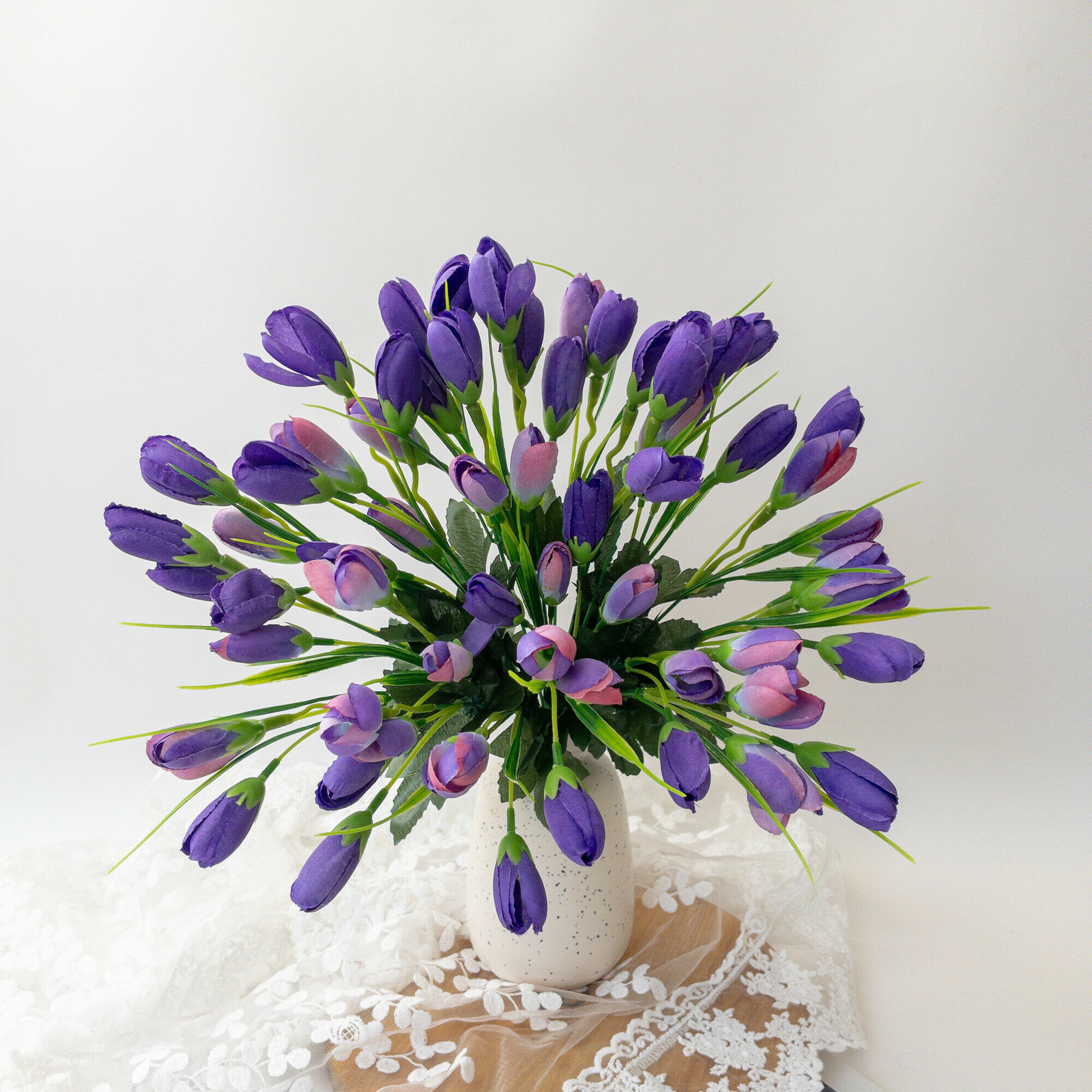 Крокусы-подснежники искусственные, Сиреневый микс, набор 3 букета, 33 см, больше 60 бутонов в наборе