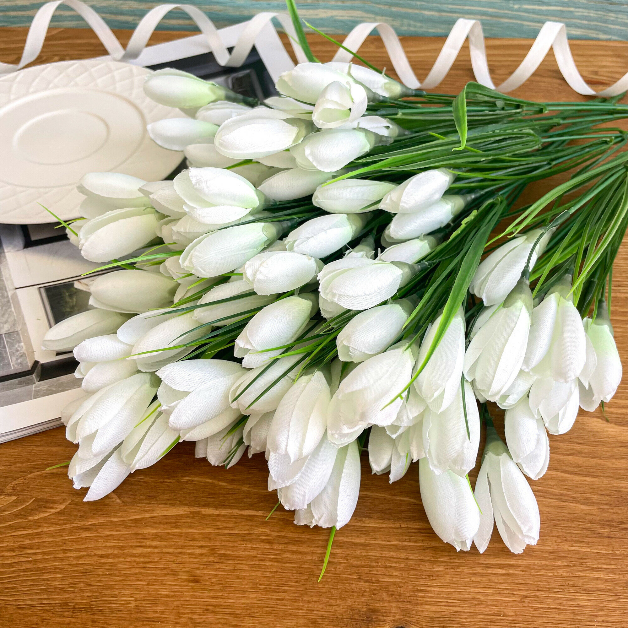 Купить Крокусы-подснежники искусственные цветы для декора, Белые, набор 5 букетов, 38 см