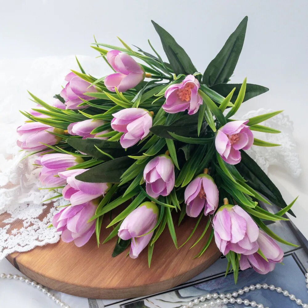 Крокусы-подснежники искусственные цветы для декора, Малиновые, набор 2 букета, 34 см