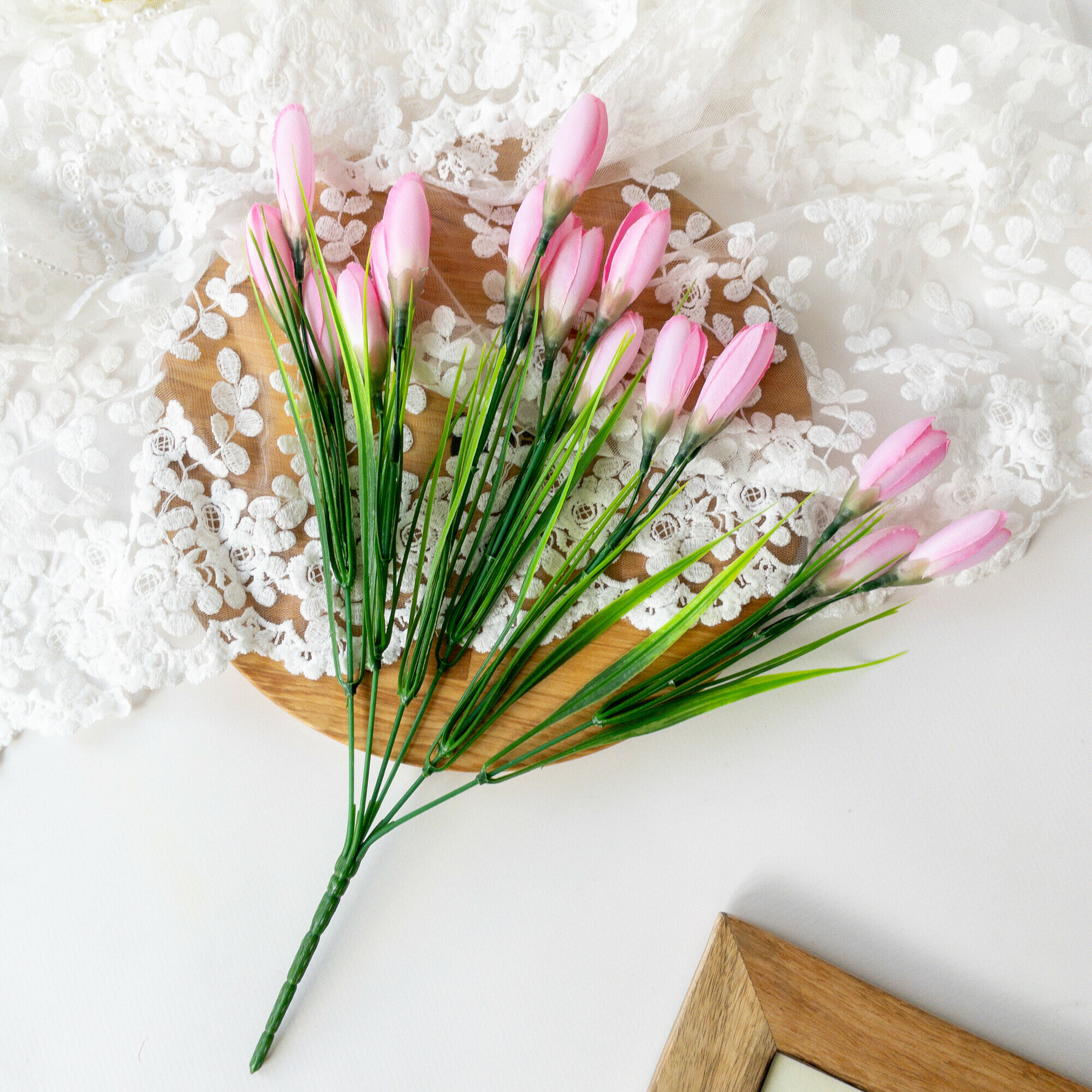 Купить Крокусы-подснежники искусственные цветы для декора, Светло-розовые, набор 5 букетов, 38 см
