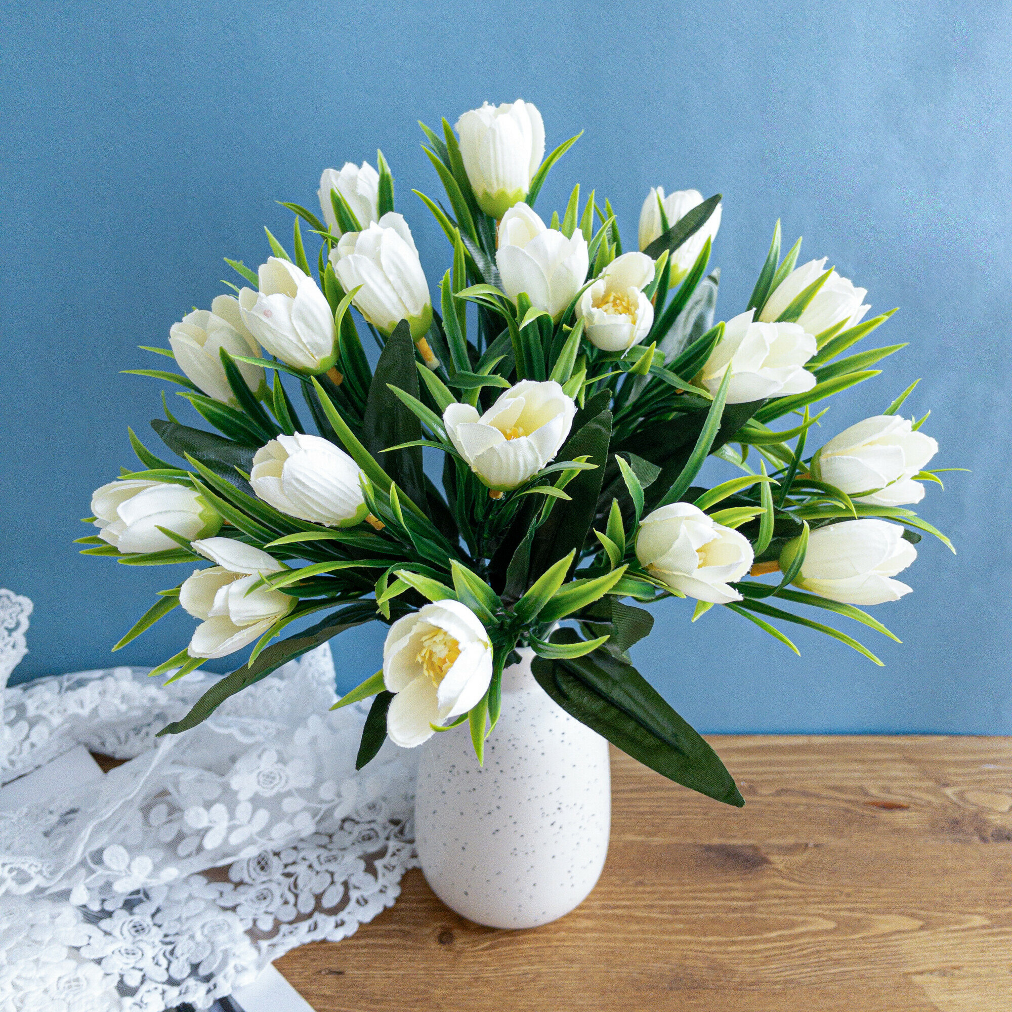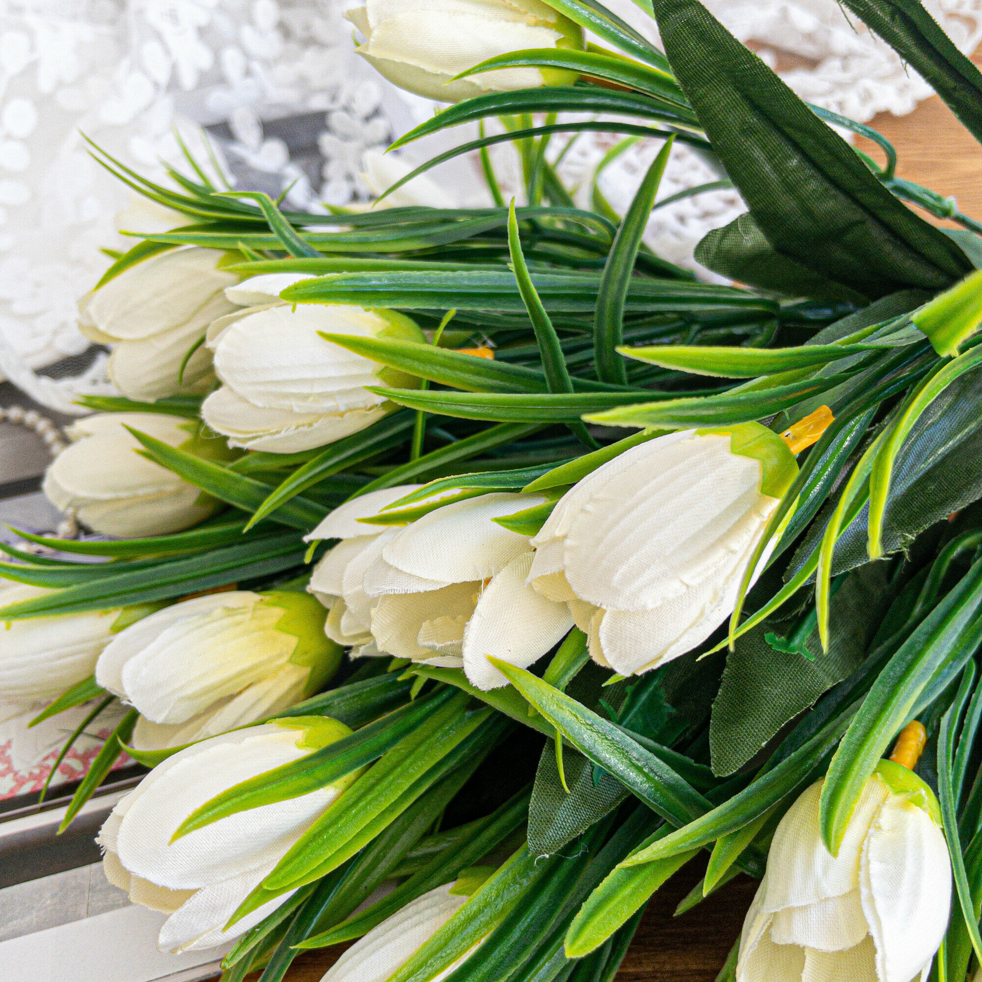Купить Крокусы-подснежники искусственные цветы для декора, Белые, набор 2 букета, 34 см