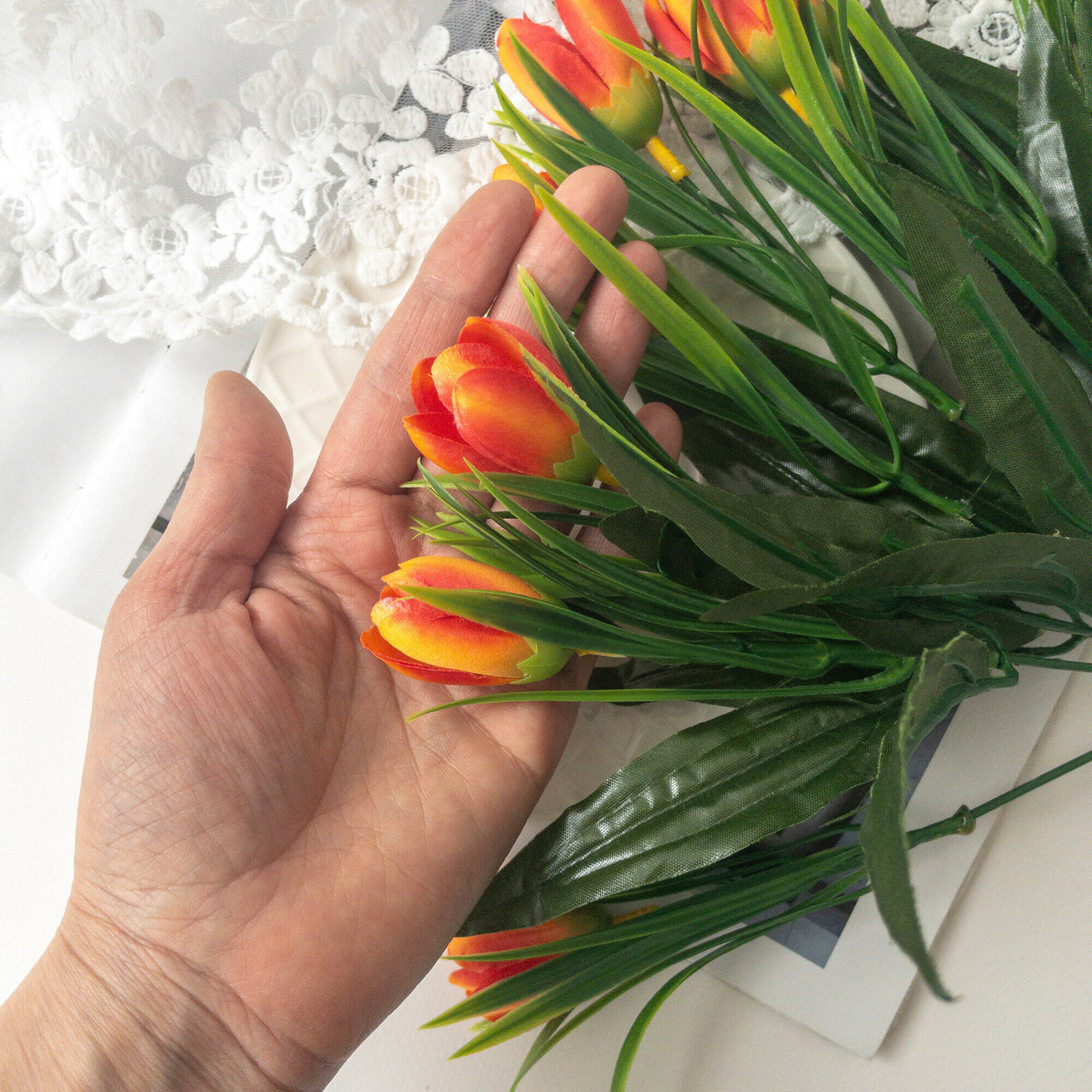 Купить Крокусы-подснежники искусственные цветы для декора, Оранжевый микс, набор 2 букета, 34 см