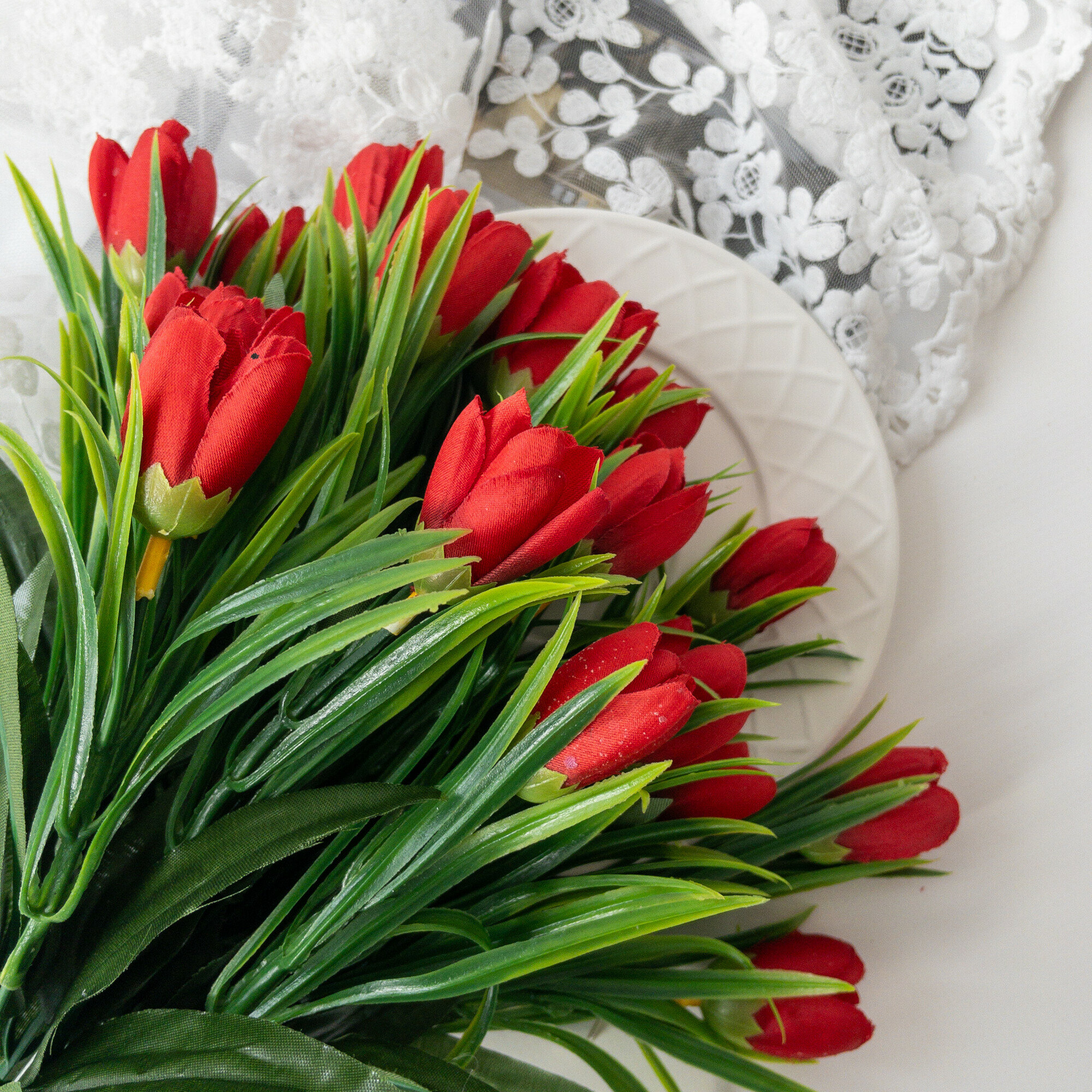 Купить Крокусы-подснежники искусственные цветы для декора, Красные, набор 2 букета, 34 см