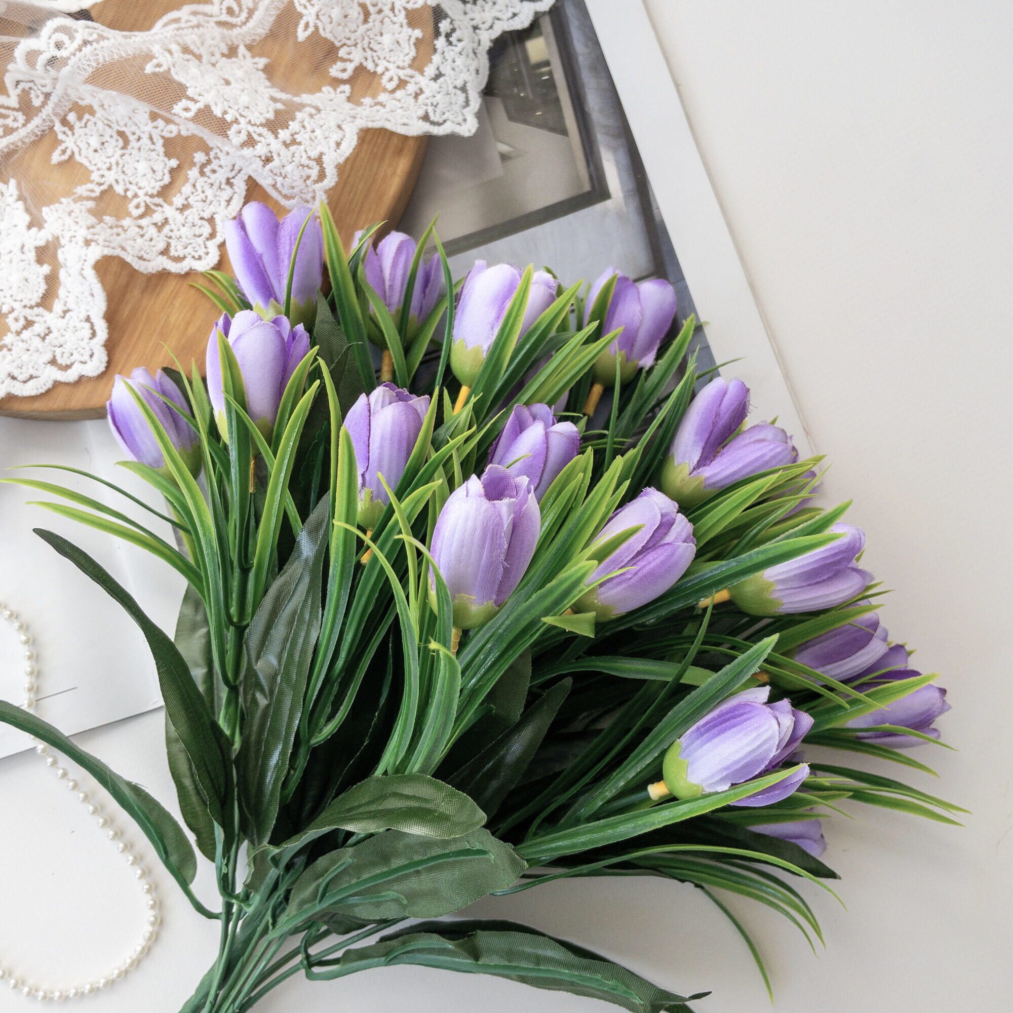 Купить Крокусы-подснежники искусственные цветы для декора, Светло-фиолетовые, набор 2 букета, 34 см