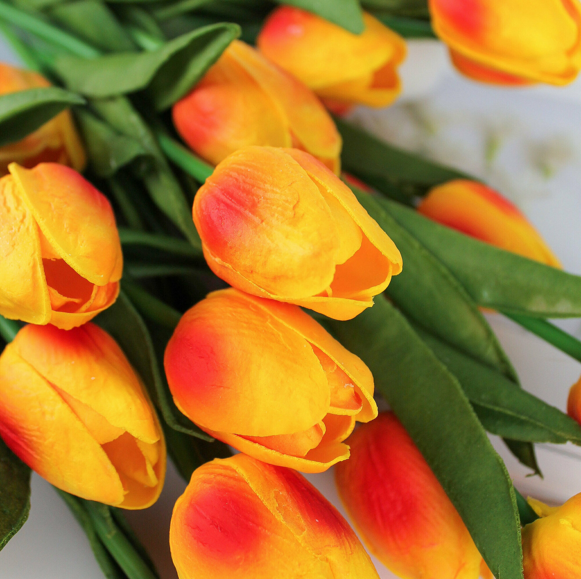 Тюльпаны силиконовые, искусственные, реалистичные, Премиум качество, Оранжевые, букет из 7 штук, 27 см