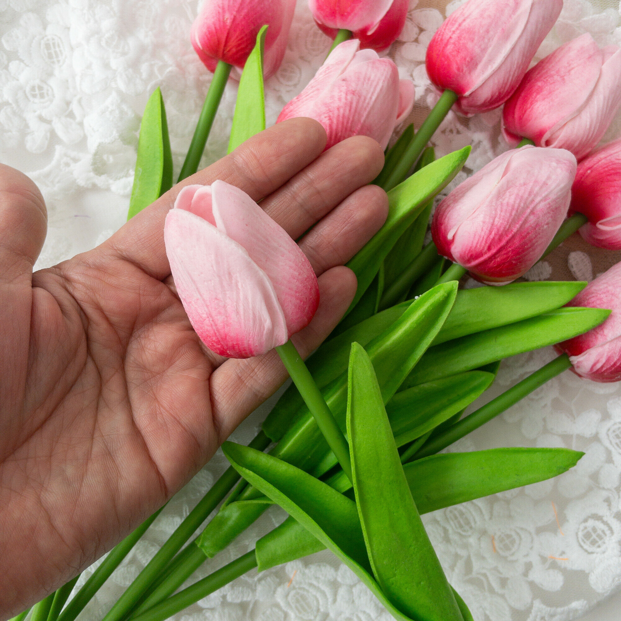 СохранитьТюльпаны реалистичные искусственные, ярко-розовые оттенки, латексные (силиконовые), букет из 9 штук, 34 см интересное: