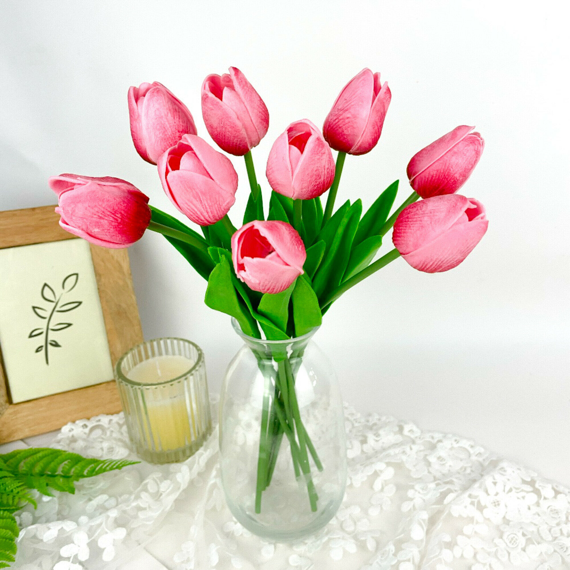 Купить Тюльпаны реалистичные искусственные, ярко-розовые оттенки, латексные (силиконовые), букет из 9 штук, 34 см