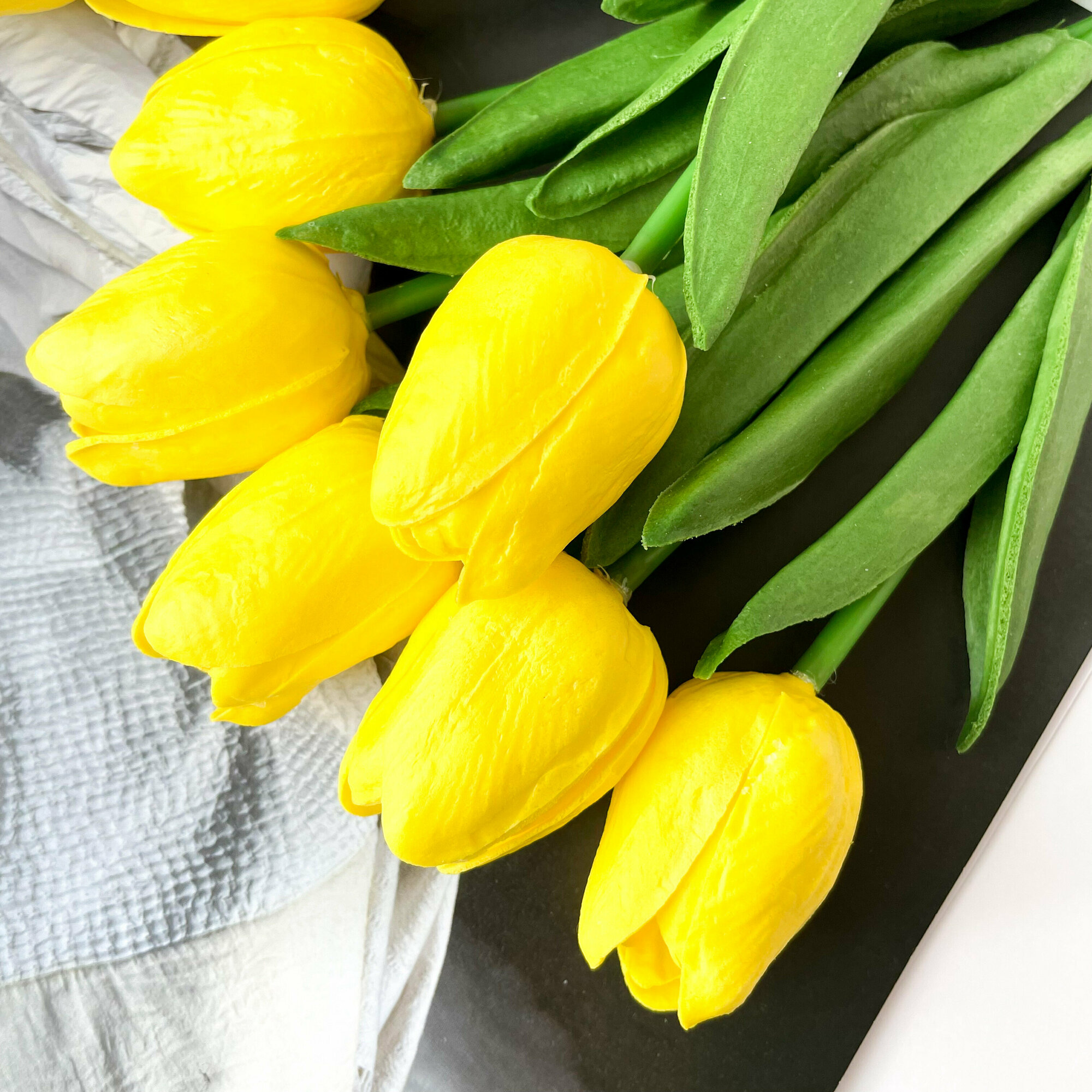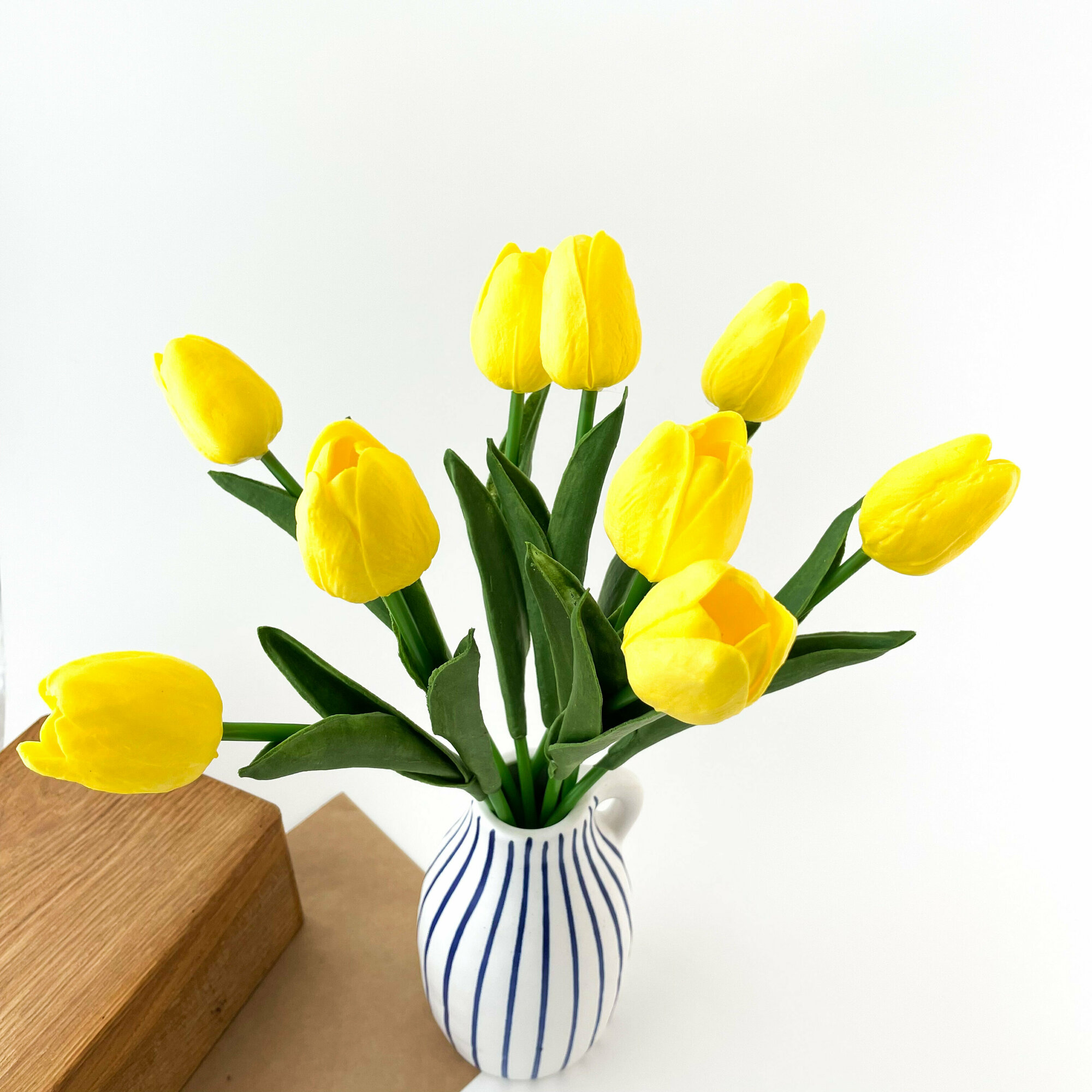 Купить Тюльпаны реалистичные искусственные, желтые, латексные (силиконовые), букет из 9 штук, 34 см