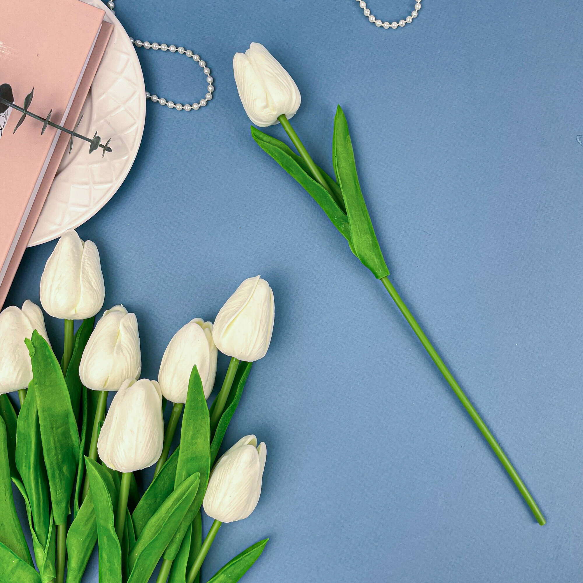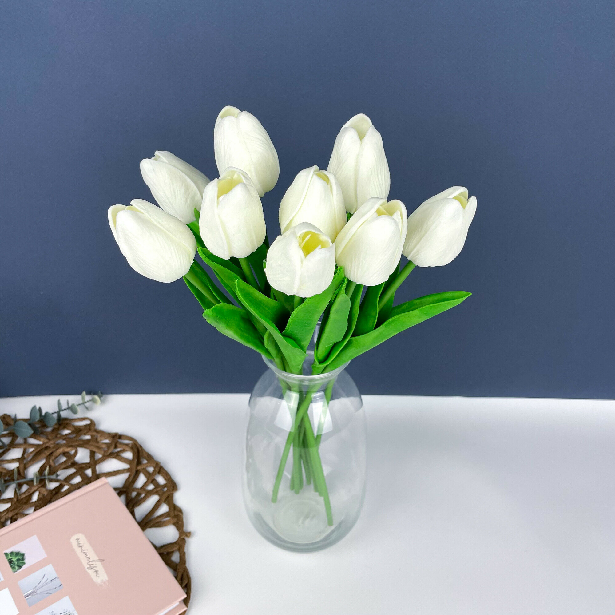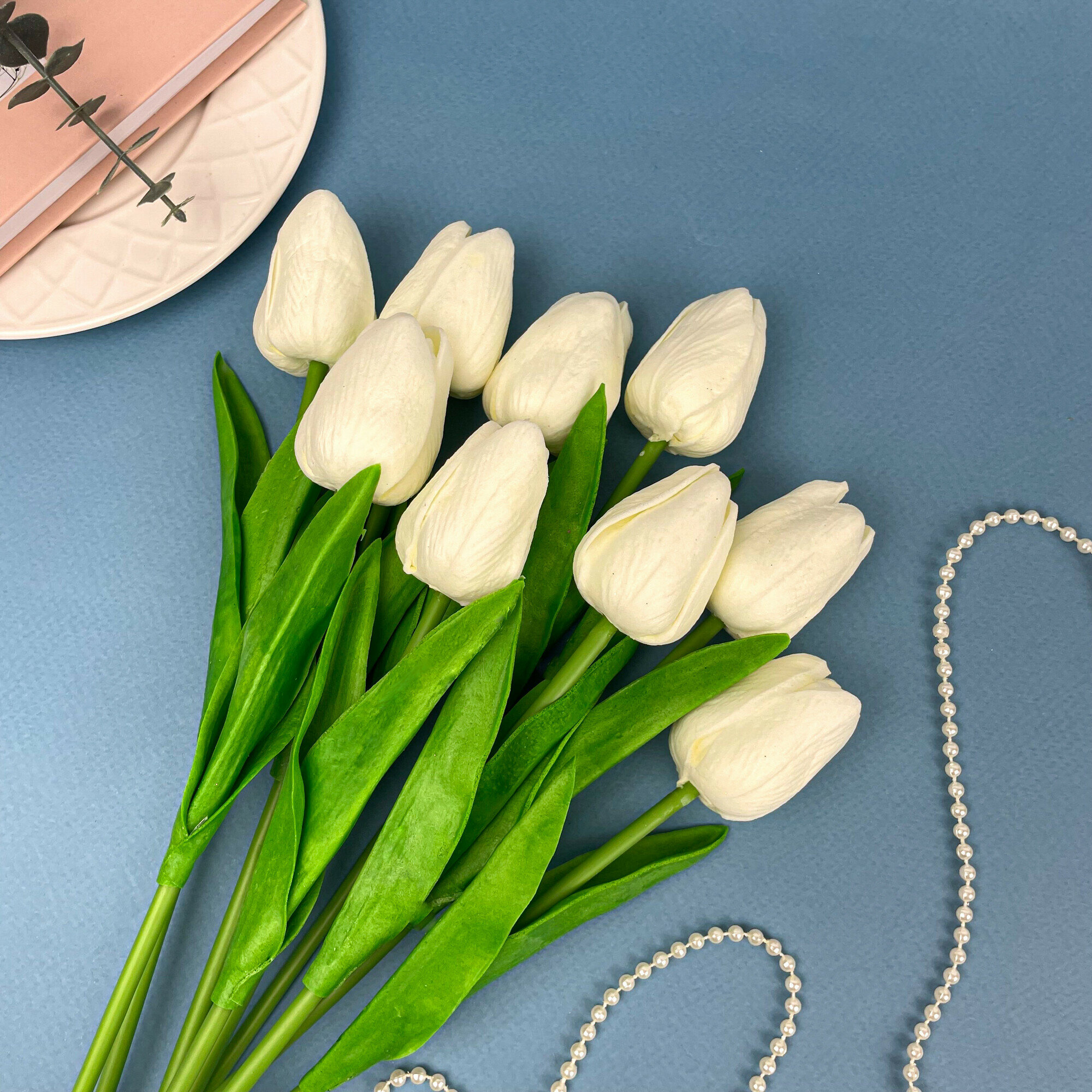 Купить Тюльпаны реалистичные искусственные, молочные, латексные (силиконовые), букет из 9 штук, 34 см