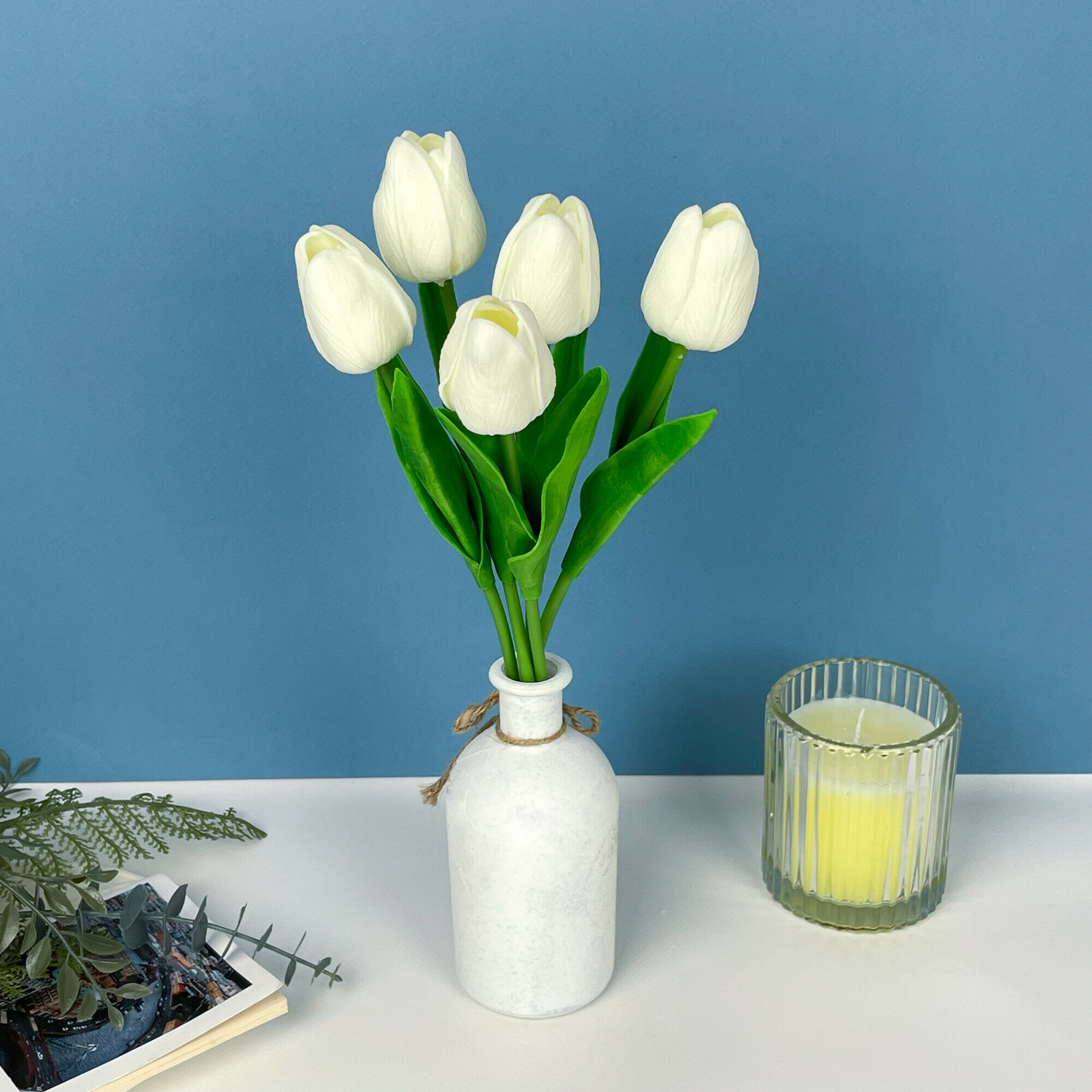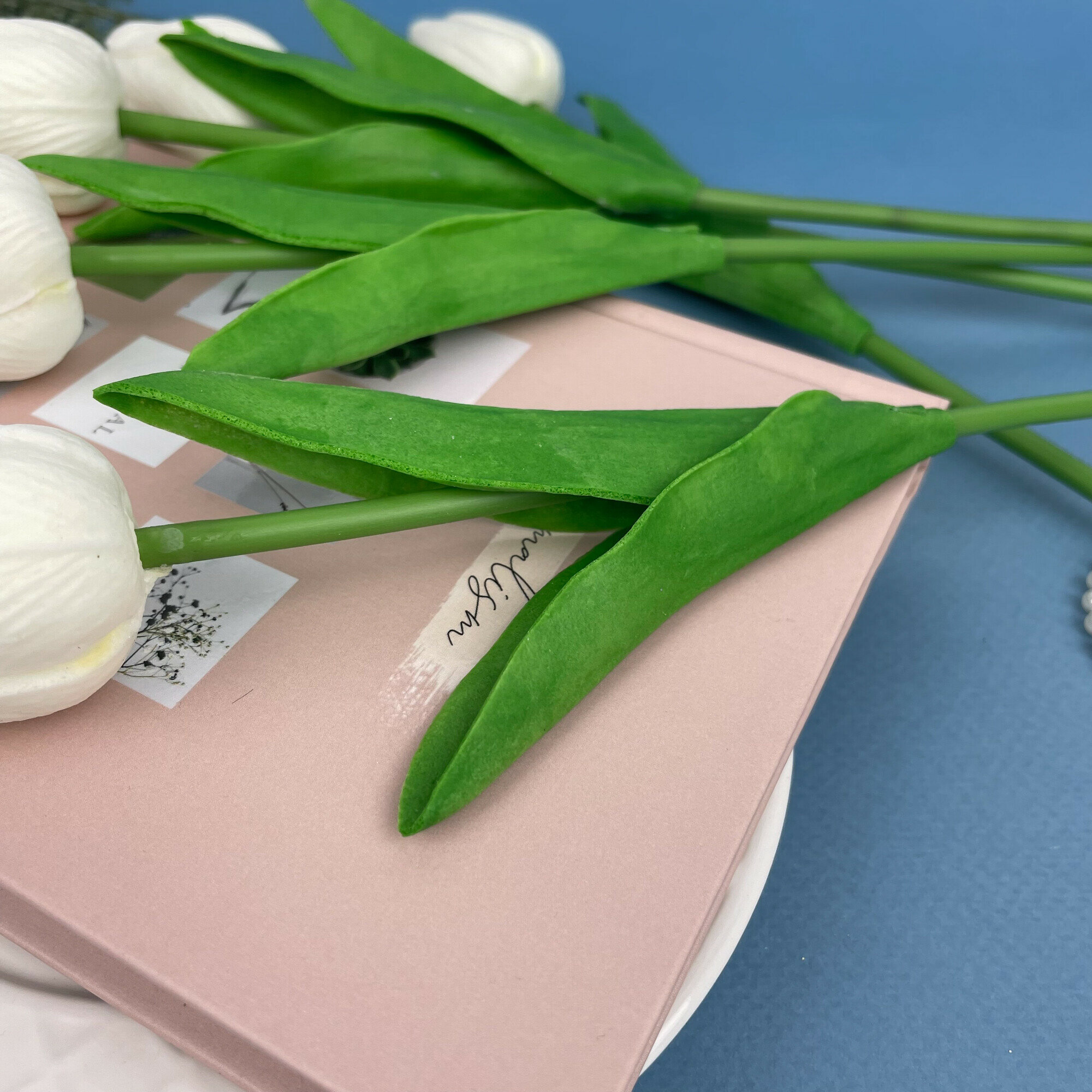 Тюльпаны искусственные, как живые, Бело-зеленые, латексные, букет из 9 штук, 34 см