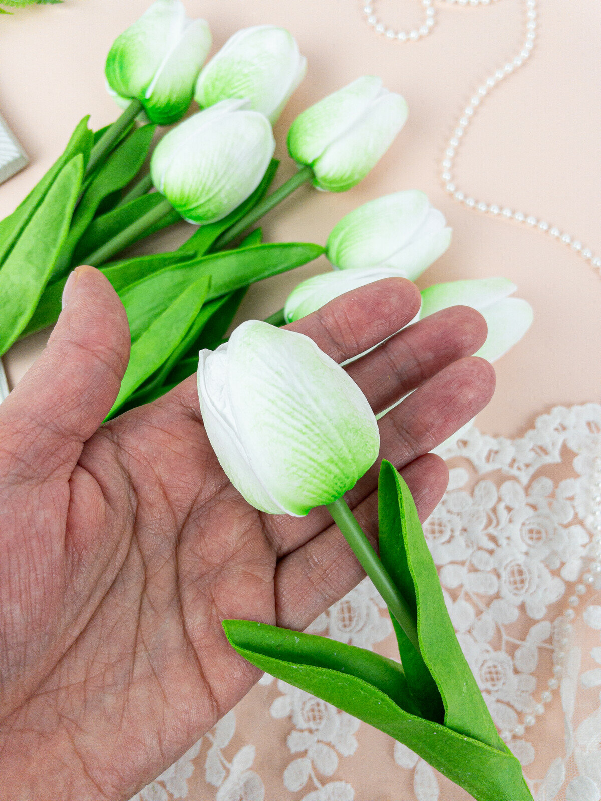 Купить Тюльпаны искусственные, как живые, Бело-зеленые, латексные, букет из 9 штук, 34 см