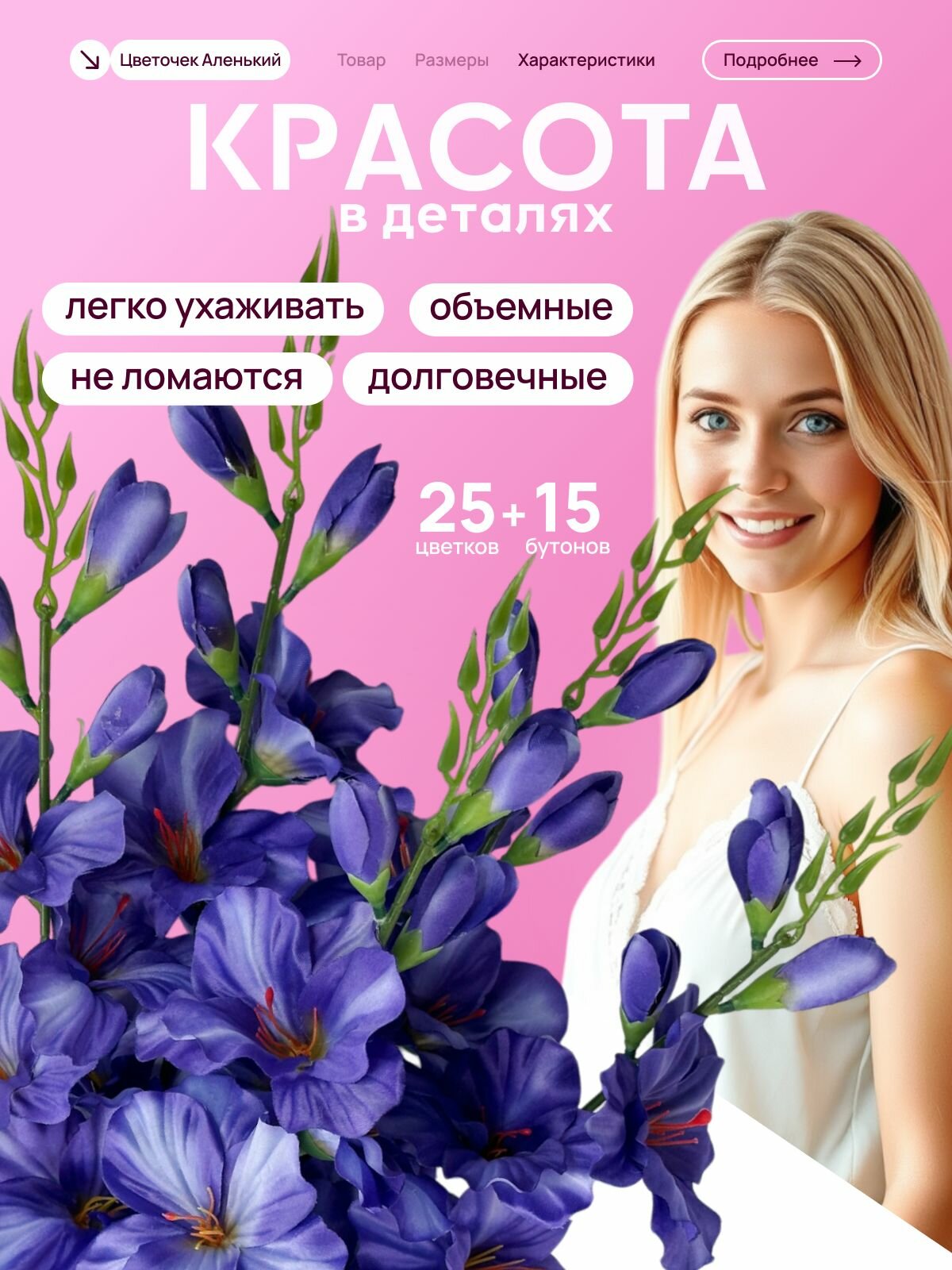 СохранитьГладиолусы искусственные цветы, сине-фиолетовый, 70 см, 5 веток интересное: