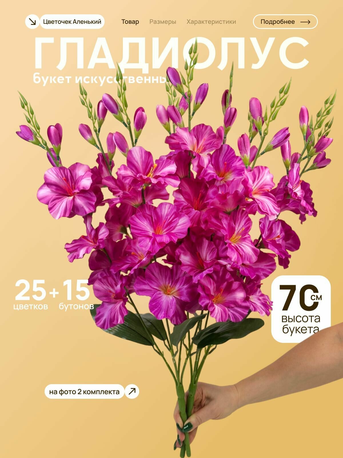 СохранитьГладиолусы искусственные цветы, сиреневый, 70 см, 5 веток/Букет интересное: