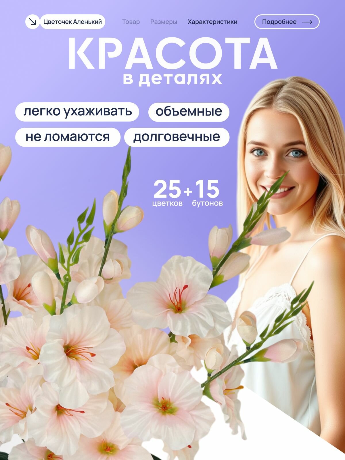 СохранитьГладиолусы искусственные цветы, бледно-розовый, бело-розовый,70 см, 5 веток интересное: