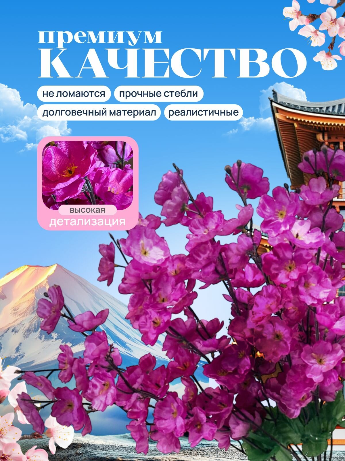 Искусственная сакура ярко-розовая, букет - 2 шт. -55 см высота / Букет