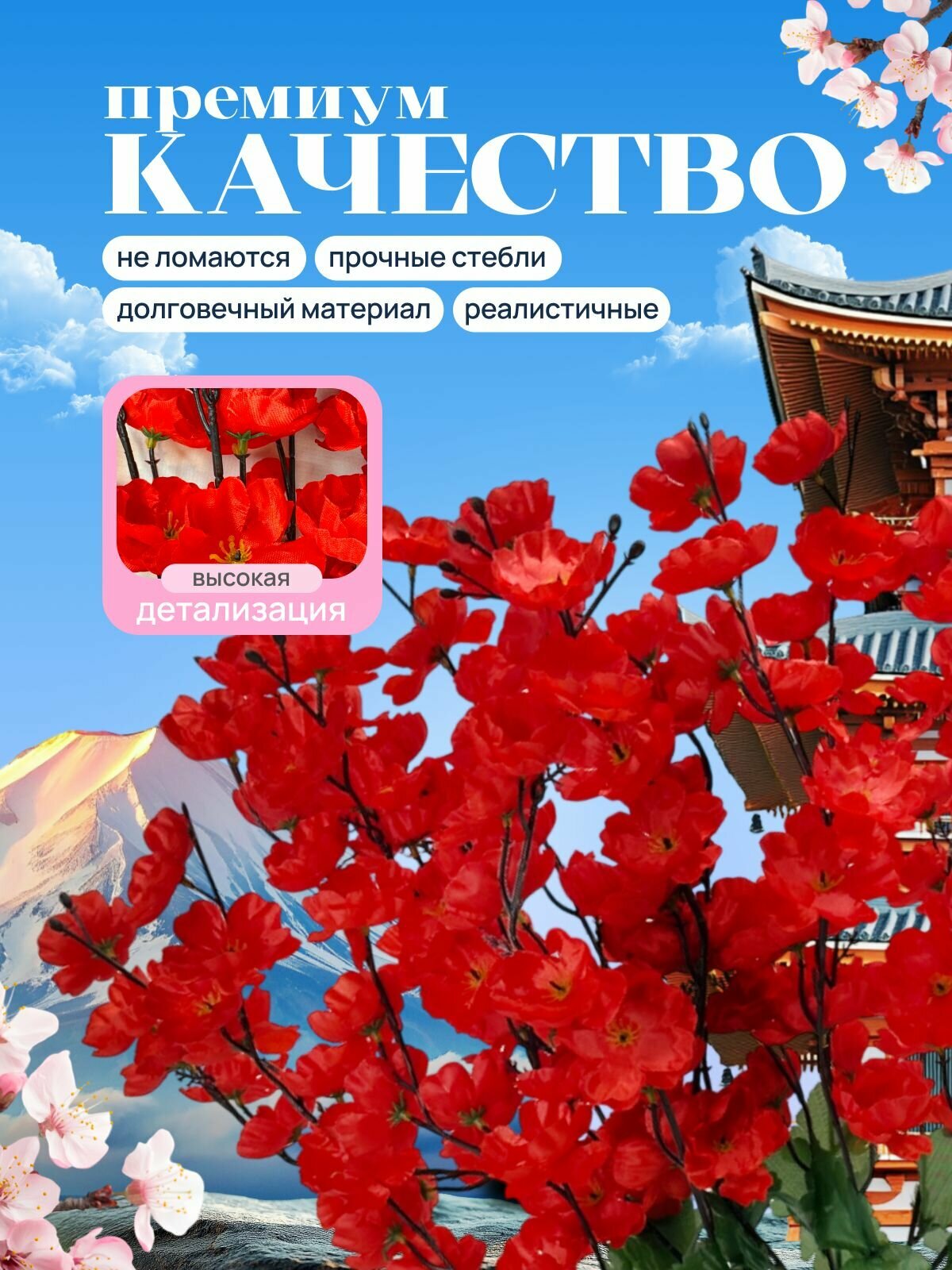 СохранитьИскусственная сакура красная, букет - 2 шт. -55 см высота / Букет интересное: