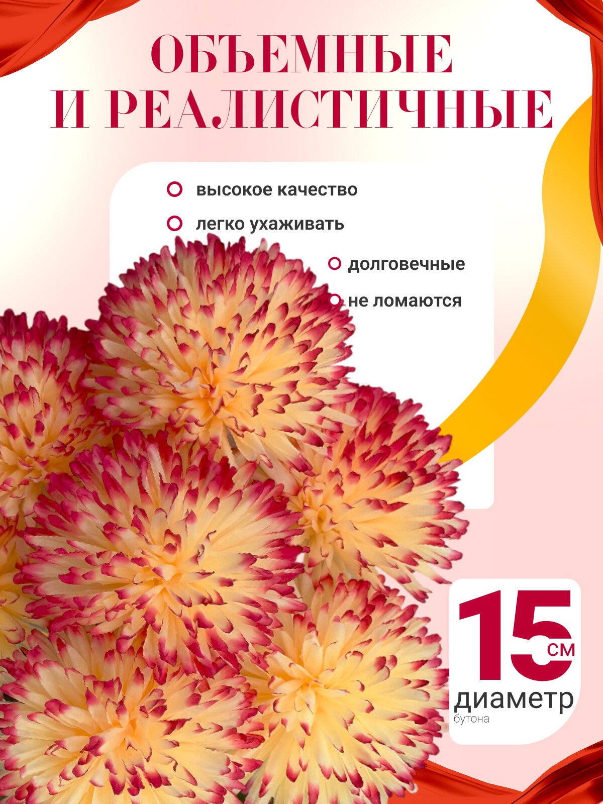 Искусственные цветы хризантема- 60 см/желто-красная хризантема