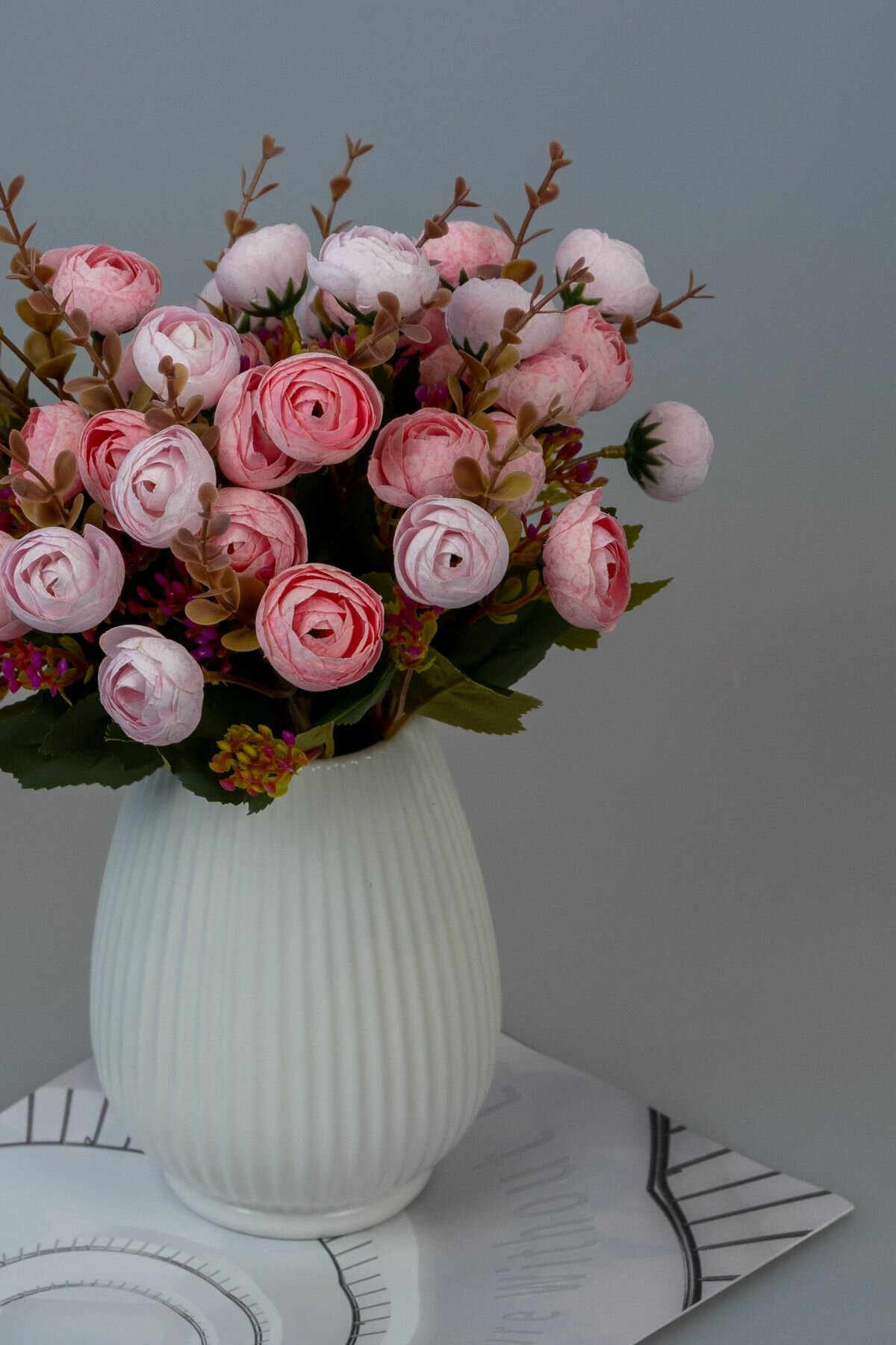 СохранитьБукет искусственных цветов для интерьера декора и кашпо мини пионы натурал розовые 3 букета интересное:
