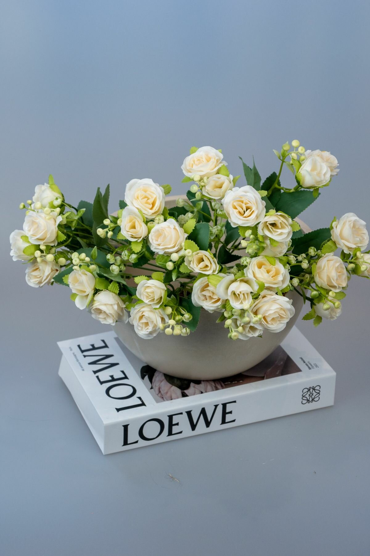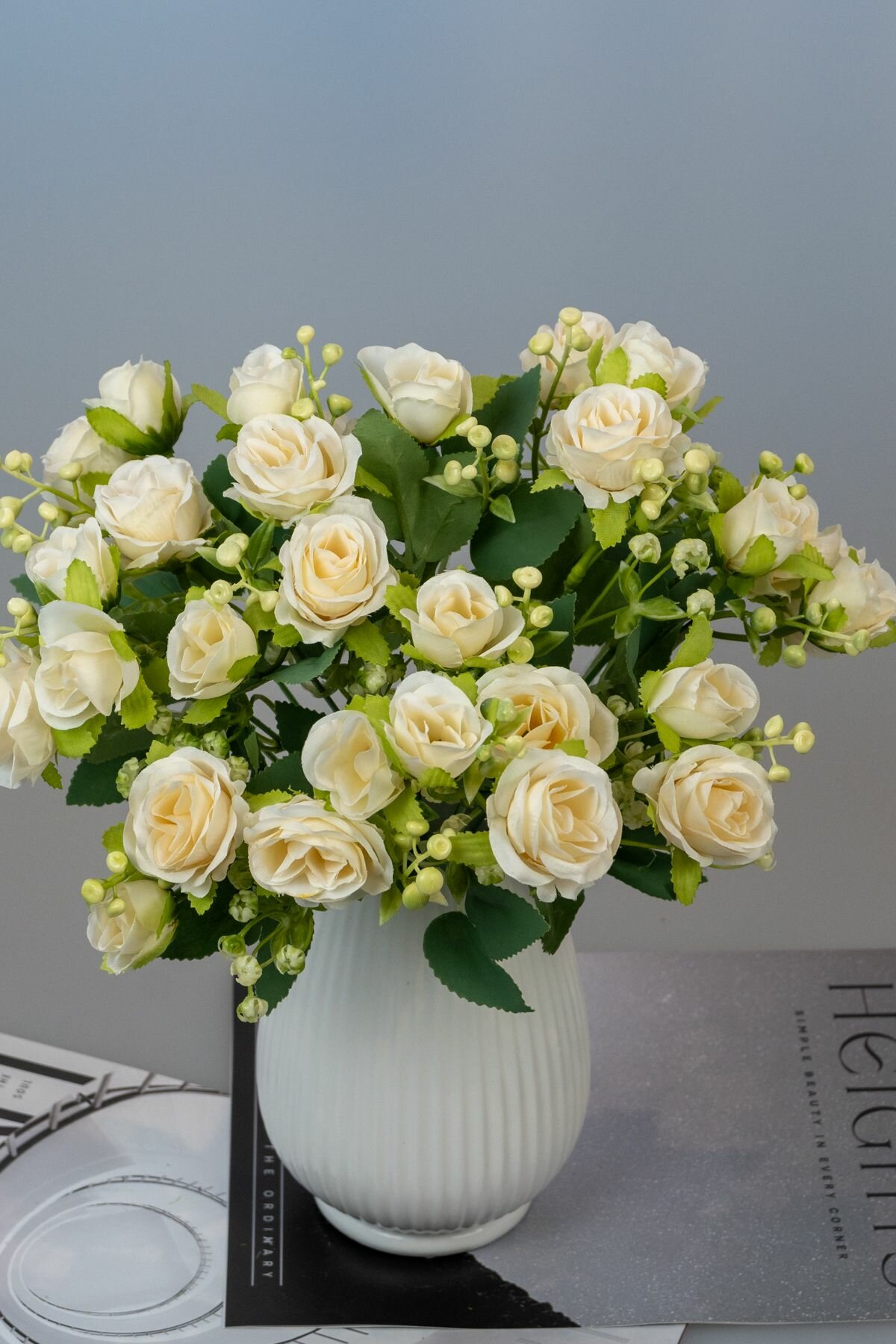 СохранитьБукет искусственных цветов для интерьера декора и кашпо мини розы с зеленью 3 ветки шампань интересное: