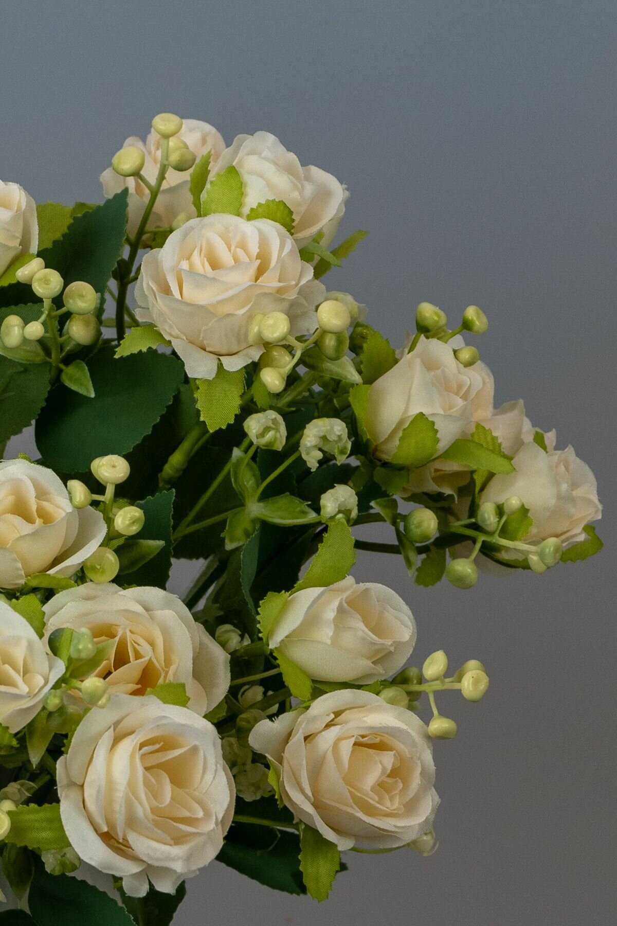 Купить Букет искусственных цветов для интерьера декора и кашпо мини розы с зеленью 3 ветки шампань