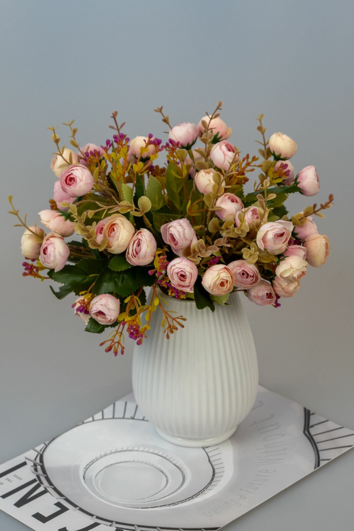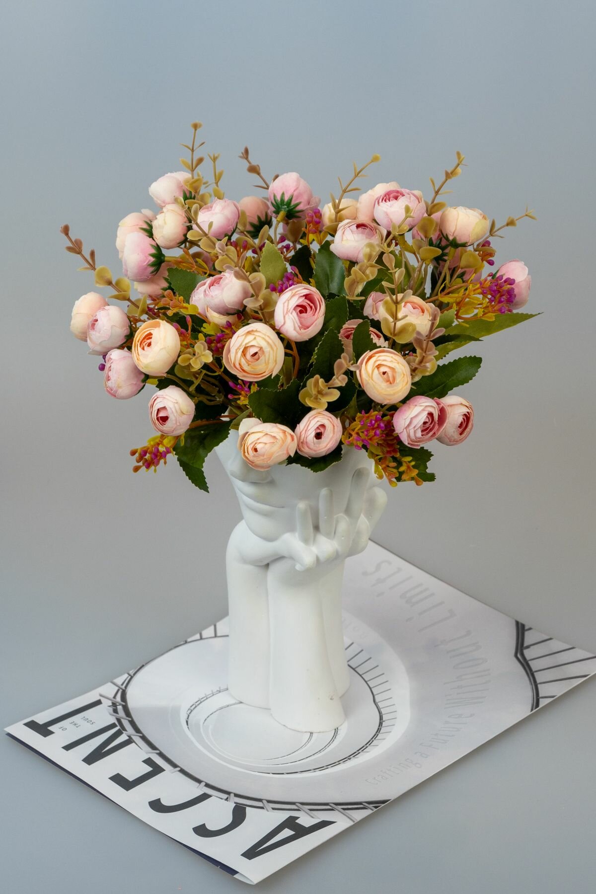 СохранитьБукет искусственных цветов для интерьера декора и кашпо мини пионы натурал розово бежевые 3 букета интересное: