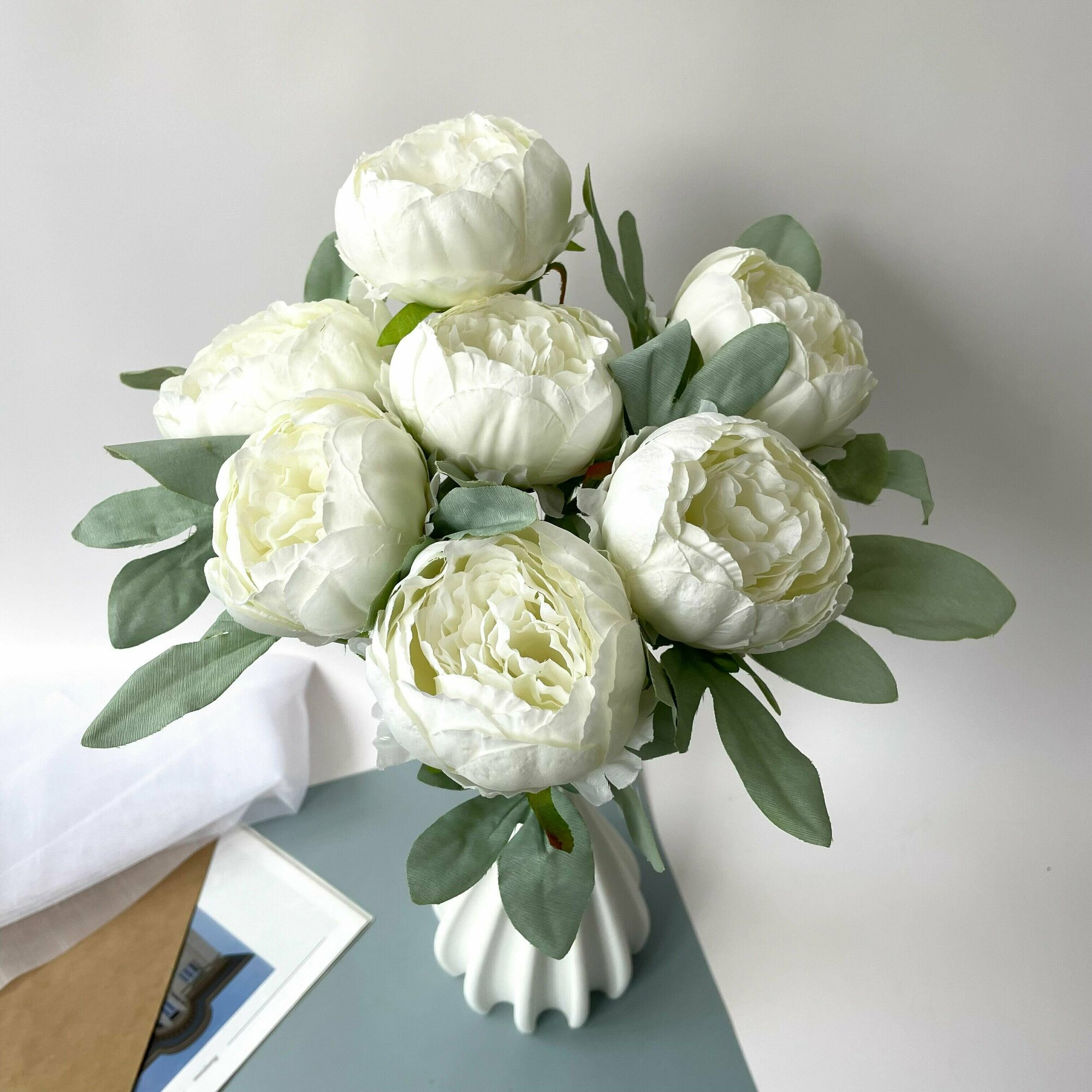 Пионы искусственные для декора, Белые, Евро букет 43 см, 7 голов, набор 1 букет