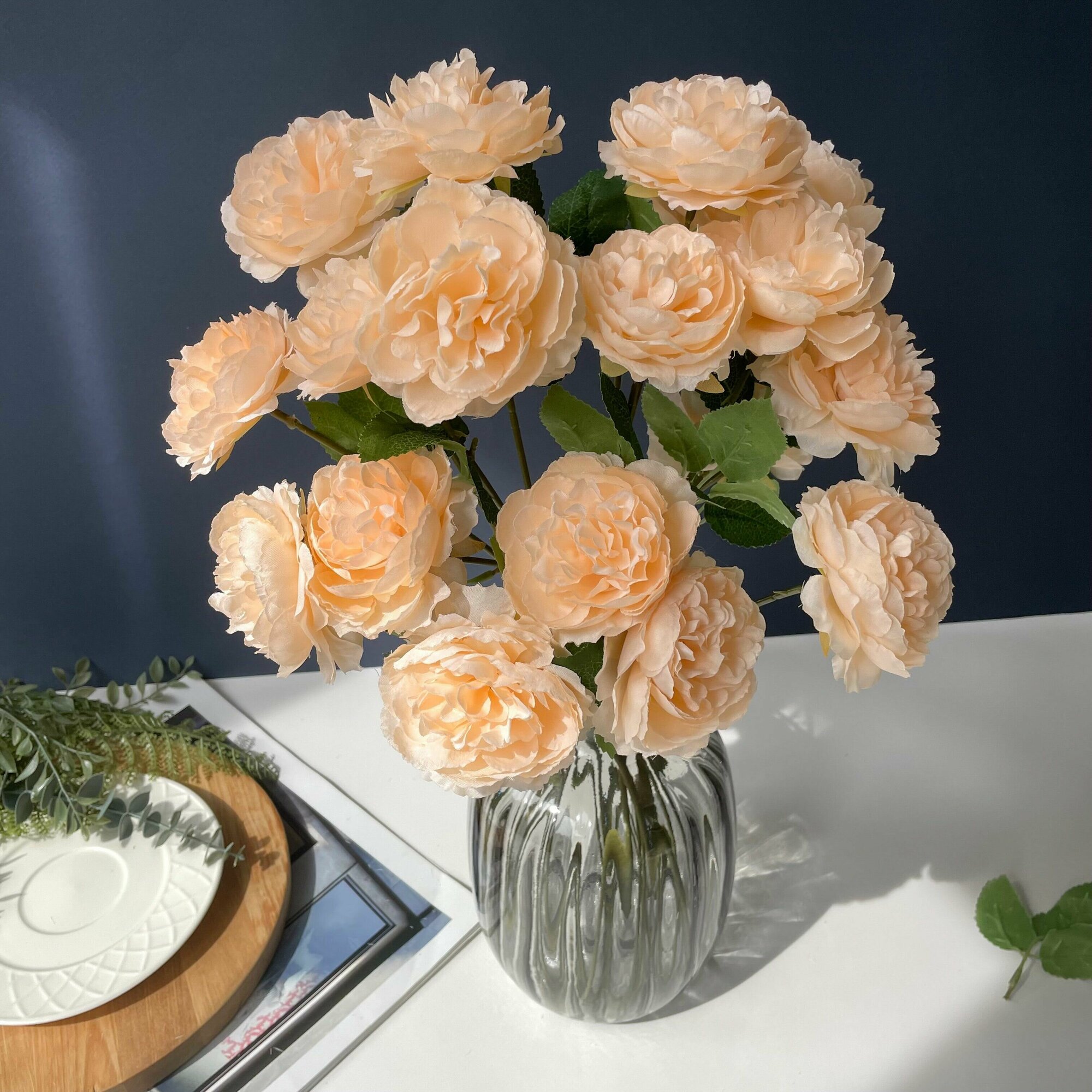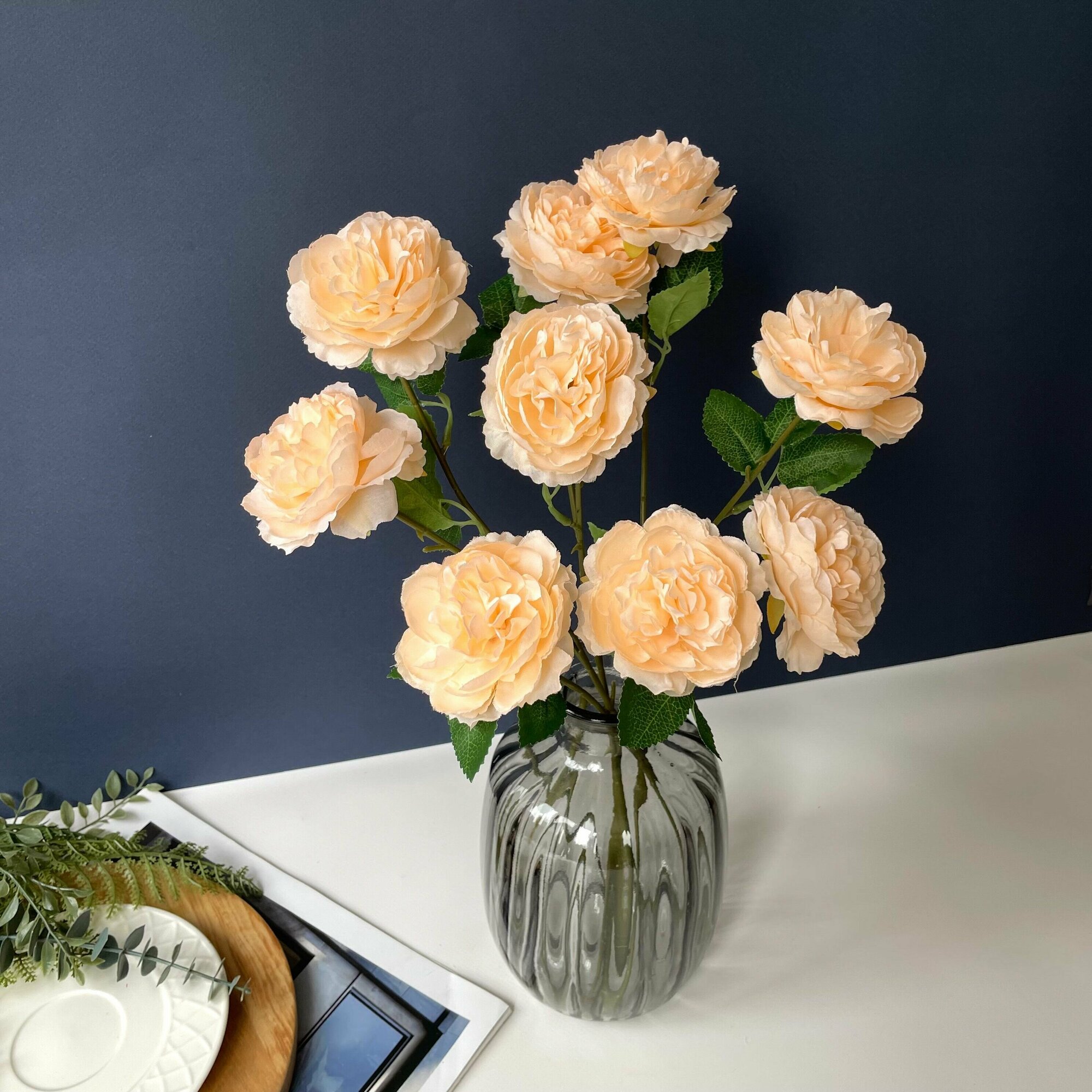 Пионы искусственные для декора, Голубые, 31 см, 12 голов, 2 букета в наборе