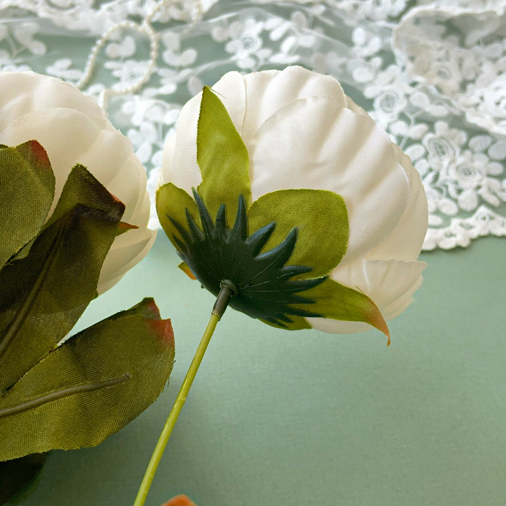 Пионы Белые искусственные евро, букет 32 см, 8 голов, набор 2 шт.