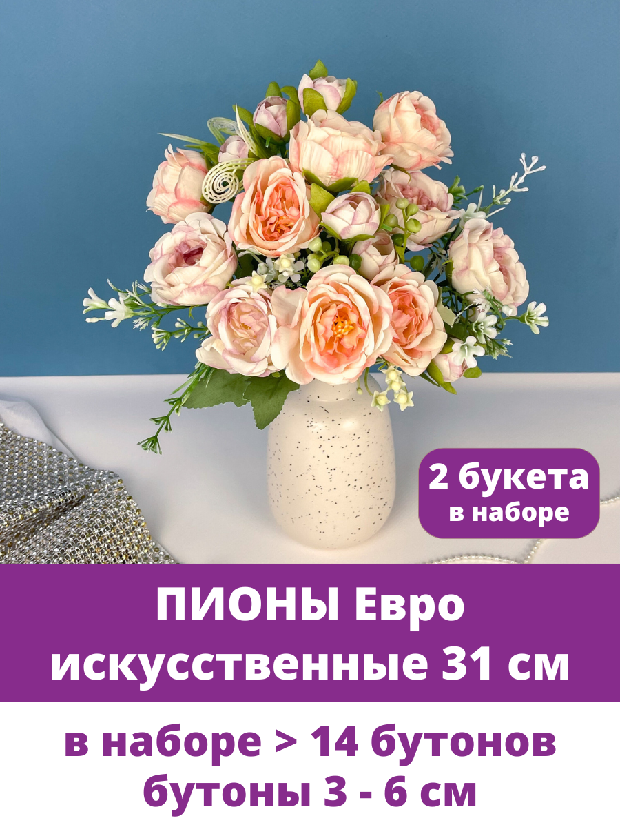 Купить Пионы Нежно-розовые искусственные евро, букет 31 см, 8 голов, набор 2 шт.