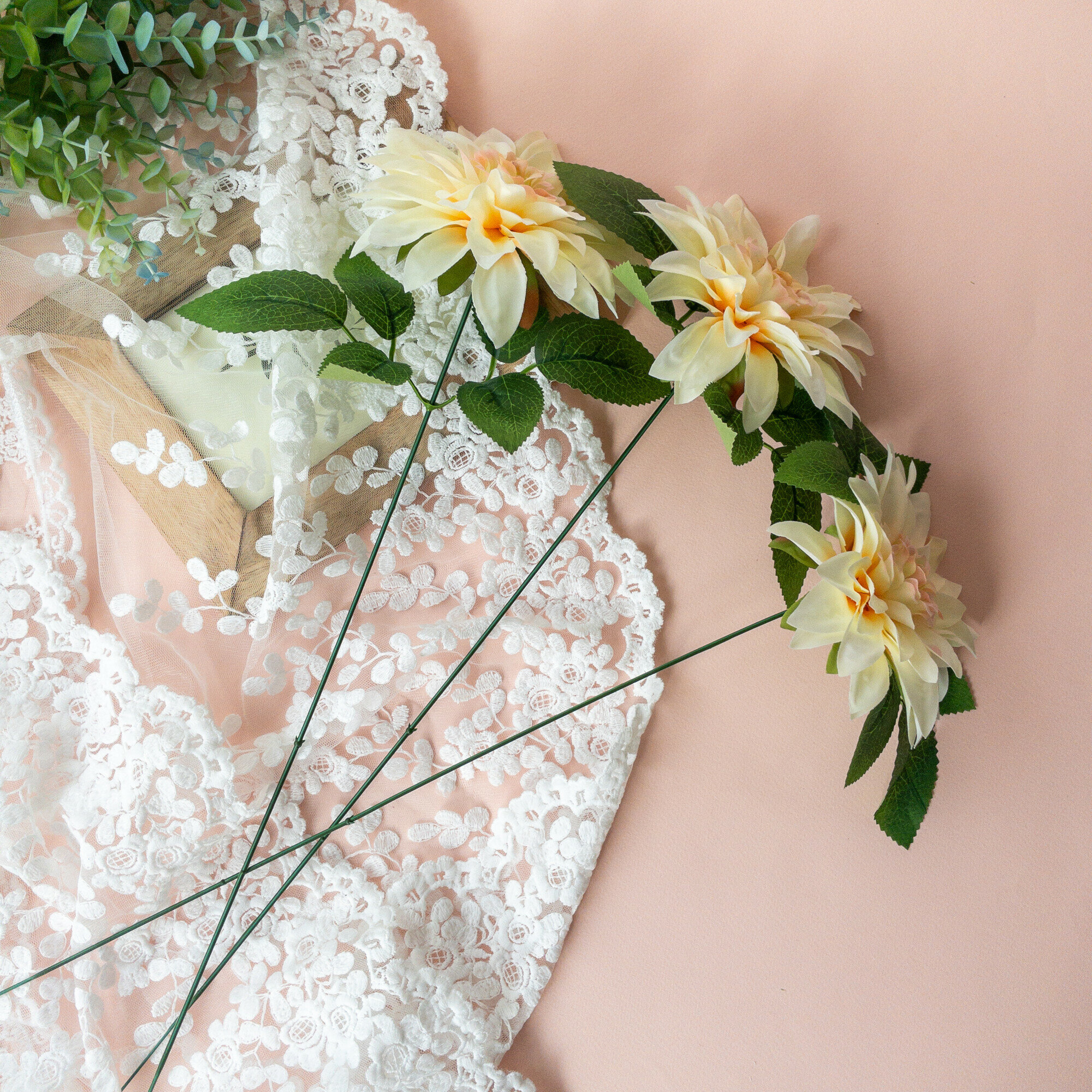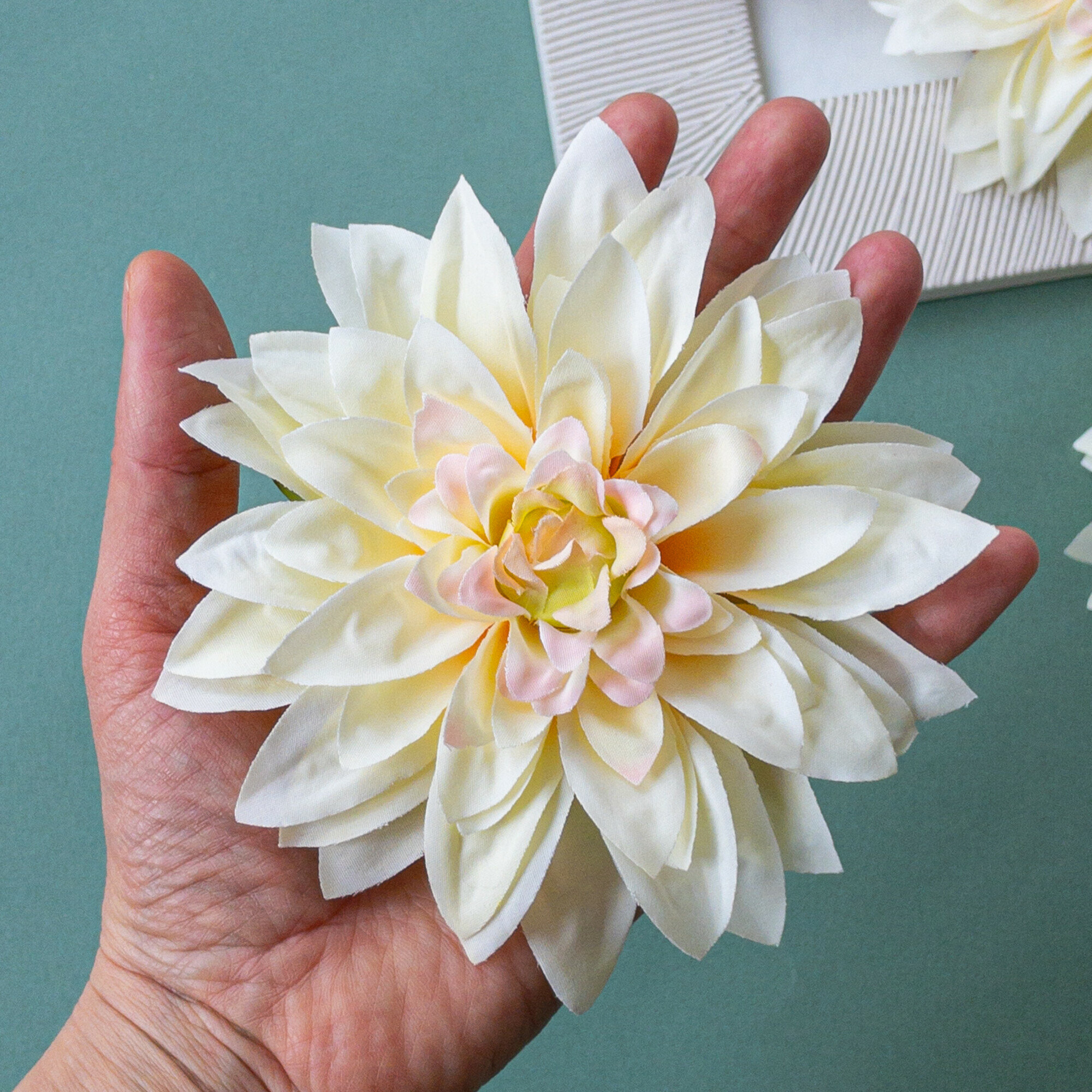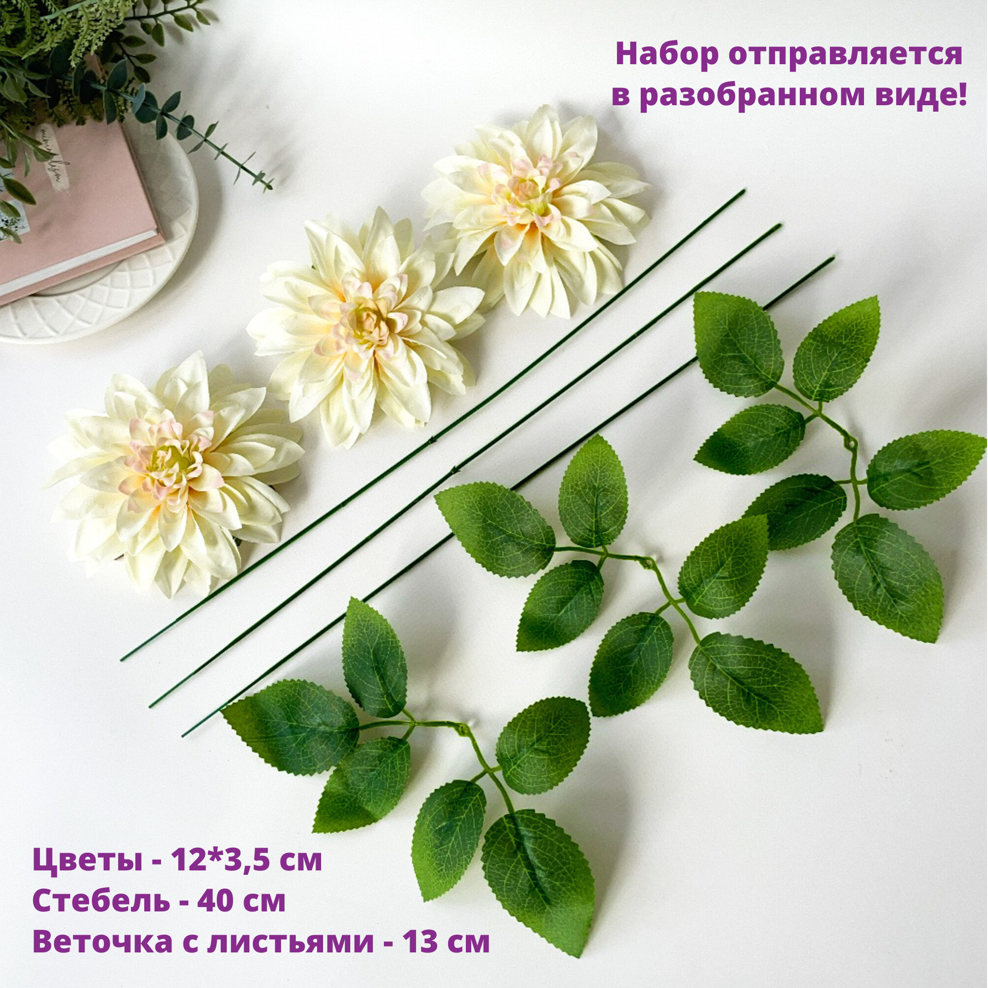 Купить Георгины цветы искусственные, для свадебного декора, Молочные, цветы 12 см, в наборе 3 шт