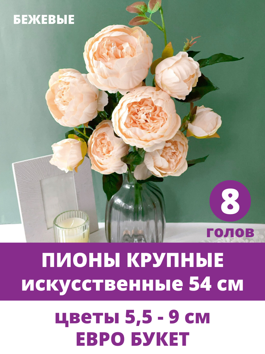 СохранитьПионы искусственные для декора, Бежевые, Евро букет 54 см, 8 голов, набор 1 букет интересное: