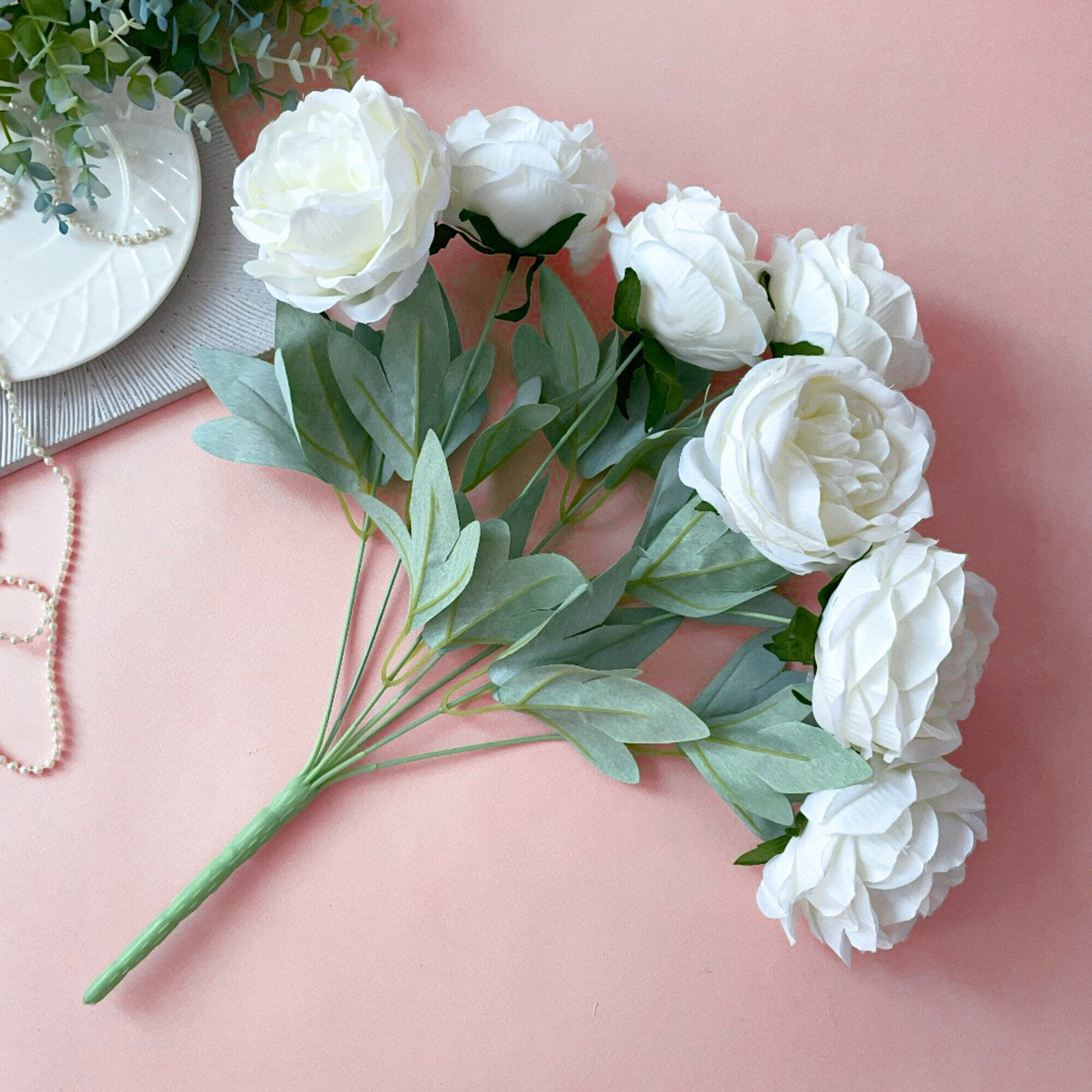 Пионы искусственные для декора, кустовые, Белые, Евро букет 78 см, 7 голов, 1 ветка