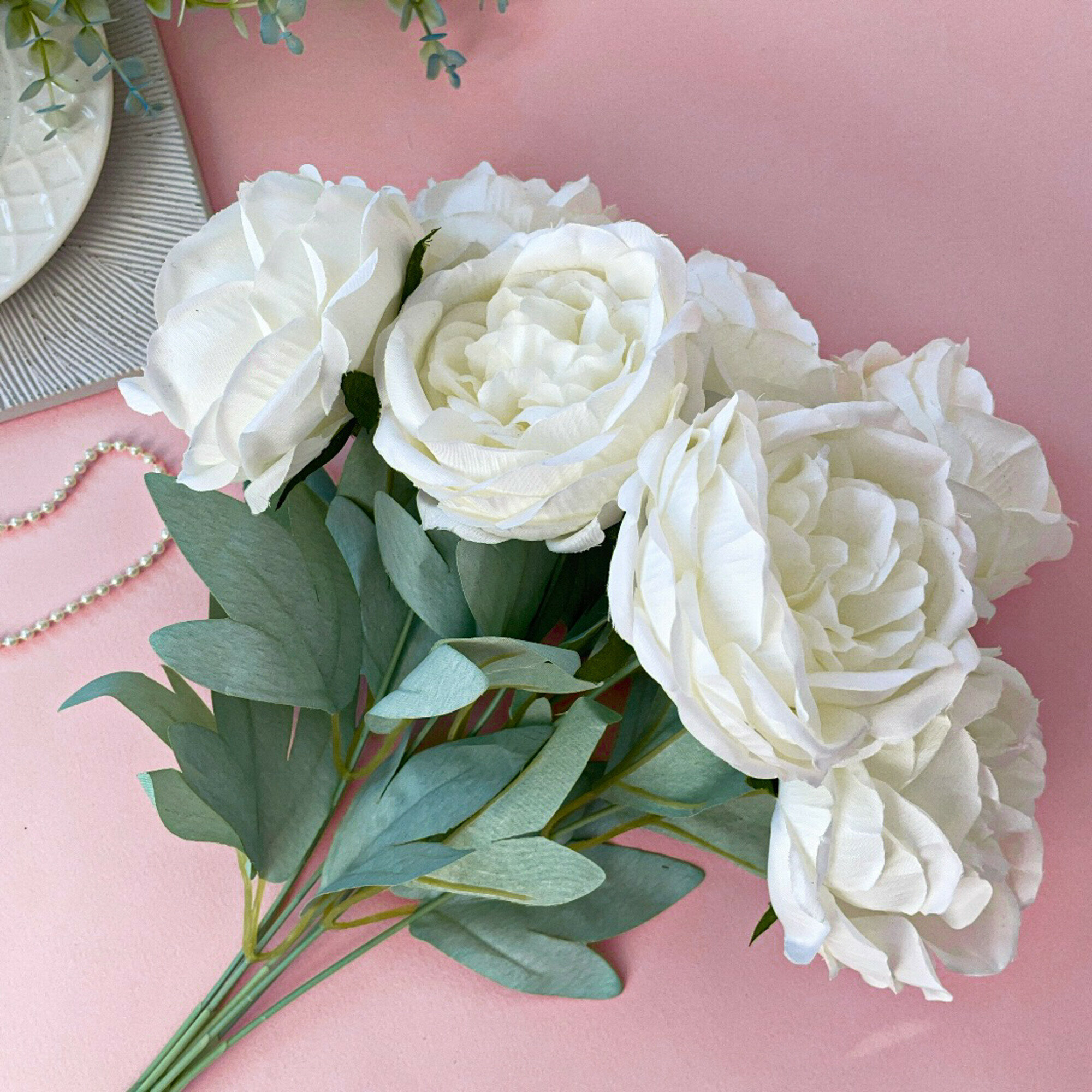 Пионы Белые искусственные евро, букет 32 см, 8 голов, набор 2 шт.