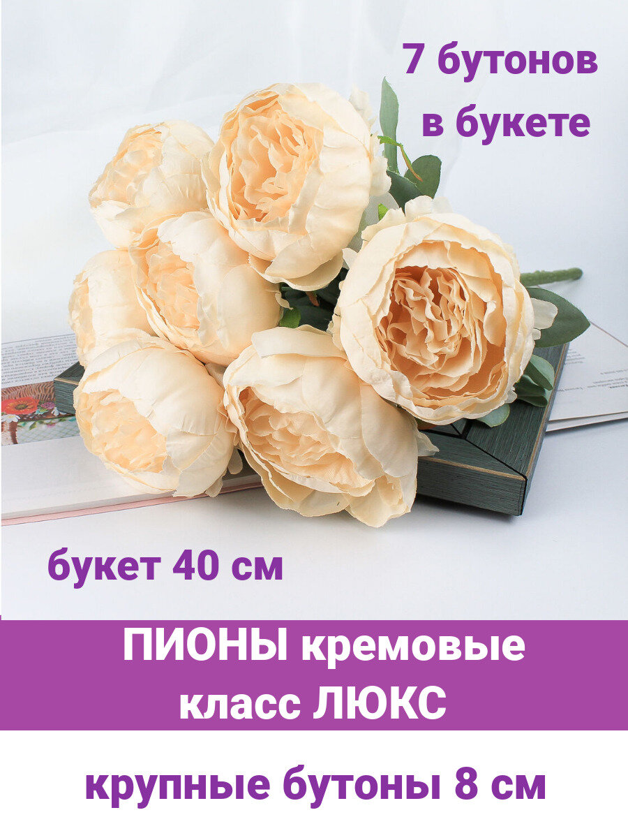Ниже Вы можете прочитать отзывы на Пионы крупные кремовые с пепельно зеленой листвой, искусственные цветы, букет 40 см, 7 голов по 8 см ., ознакомится с подробными характеристиками, посмотреть интересные обзоры и фотографии на Пионы крупные кремовые с пепельно зеленой листвой, искусственные цветы, букет 40 см, 7 голов по 8 см ..