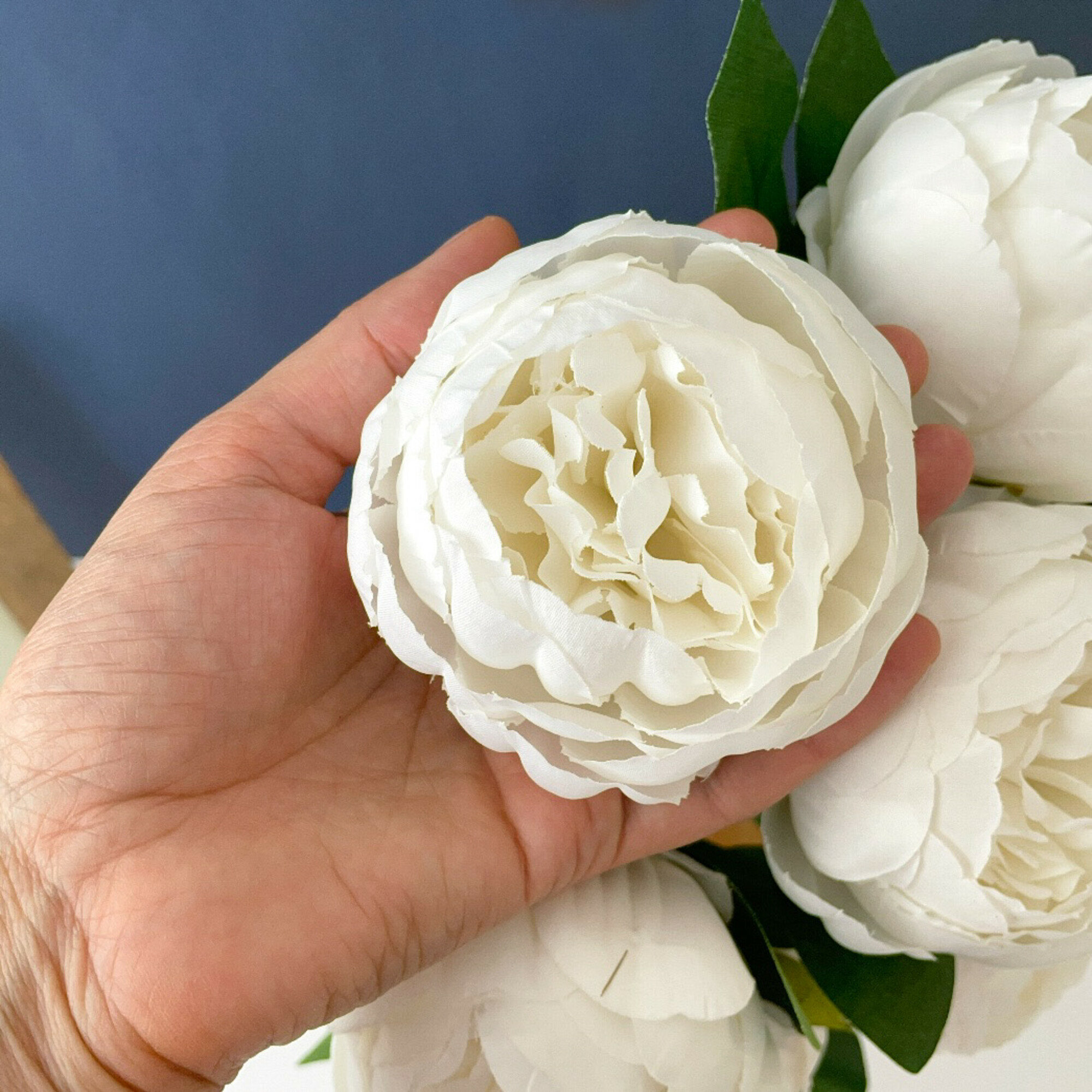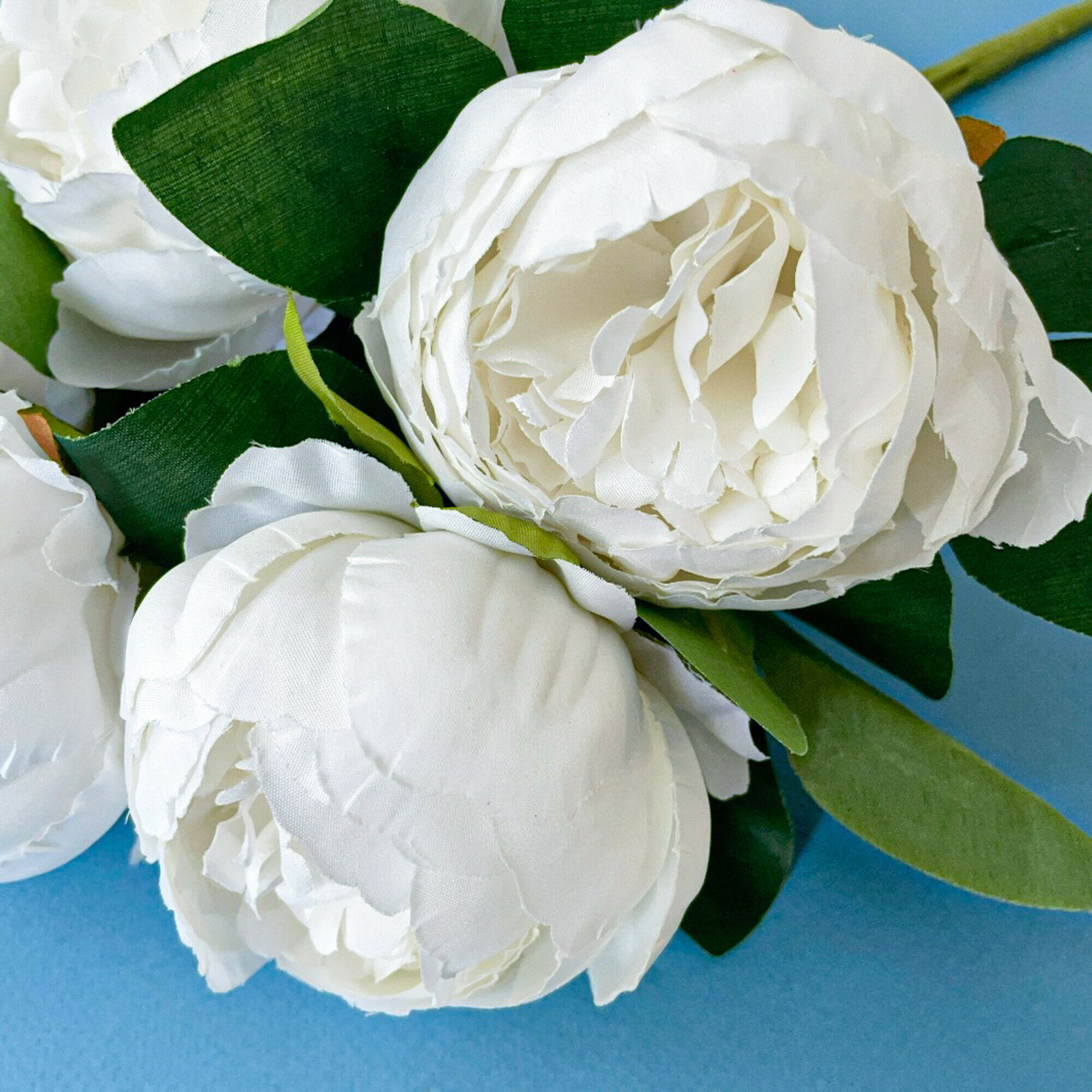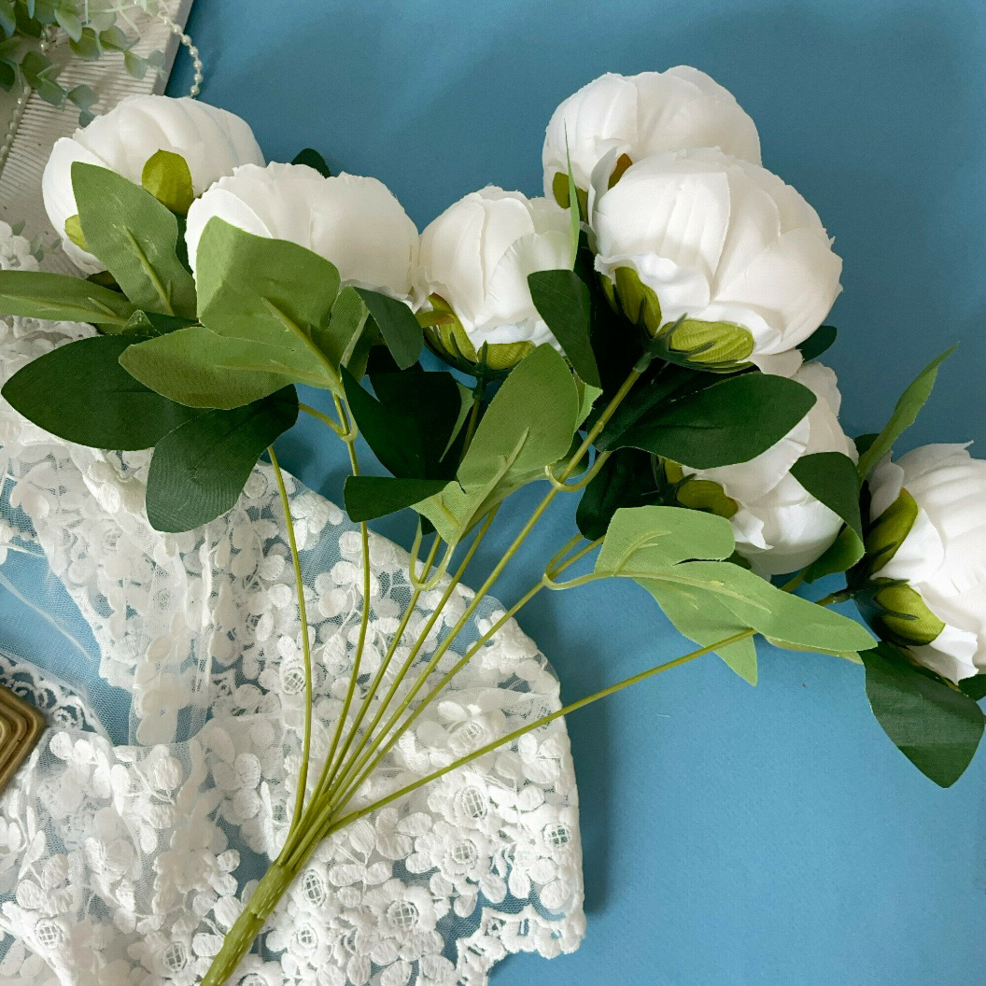 Купить Пионы крупные искусственные, Белые, Евро букет 43 см, 7 голов, набор 1 букет