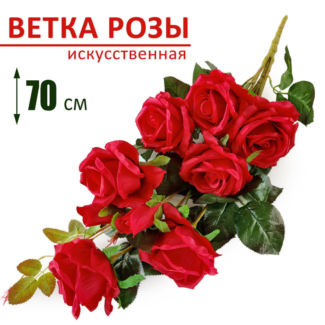 Ветка розы искусственная большая для декора, 70 см. Цвет: Красный интересное: