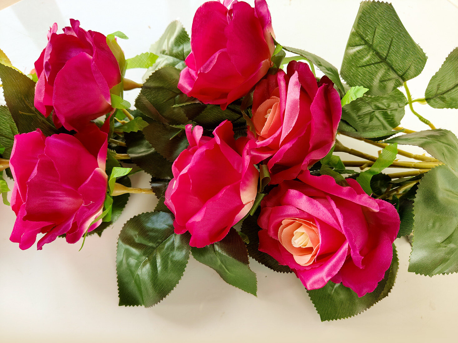 Ветка розы искусственная большая для декора, 70 см. Цвет: Ярко-розовый