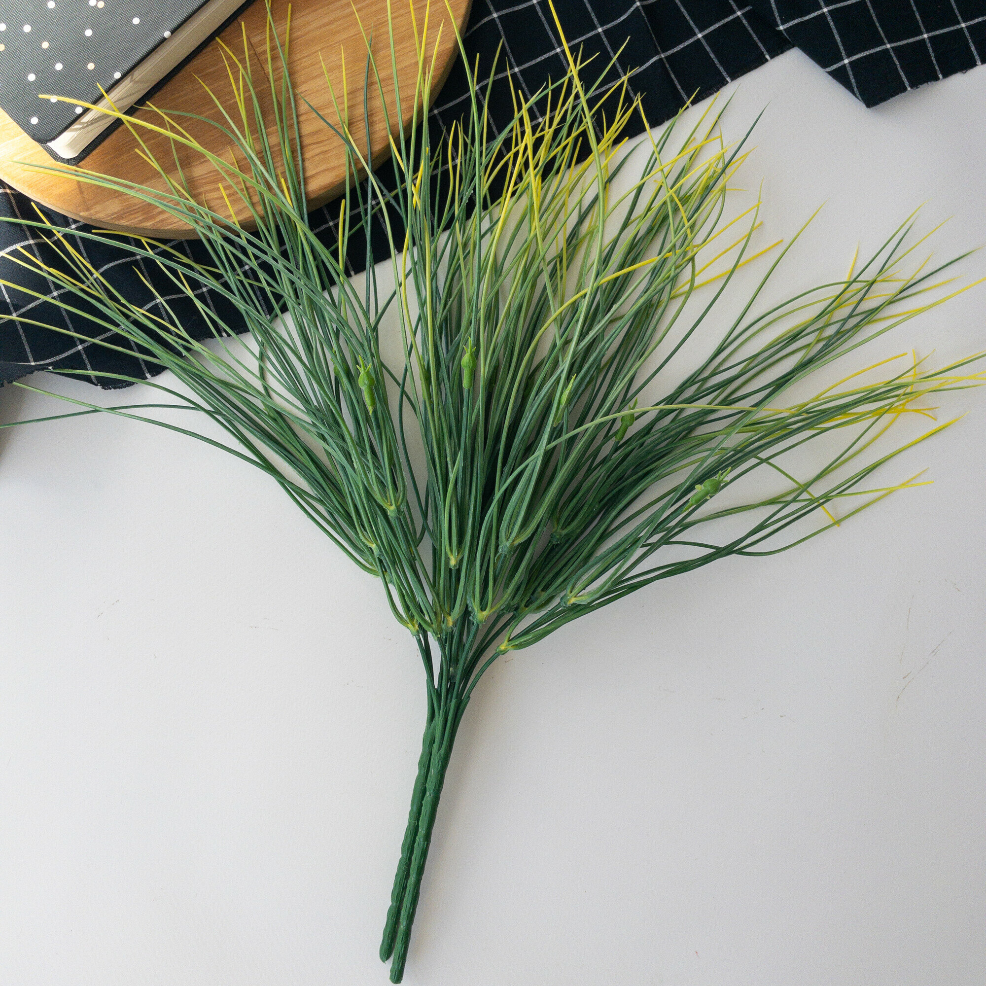 Осока трава, зелень искусственная для декора, Эффект Патины, Зелено-Желтая, 44 см, набор 2 ветки интересное: