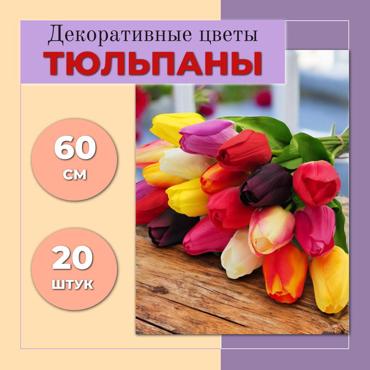 Цветы Тюльпаны (CV1) декоративные, искусственные, интерьерные 20 штук, 60см, разноцветный интересное: