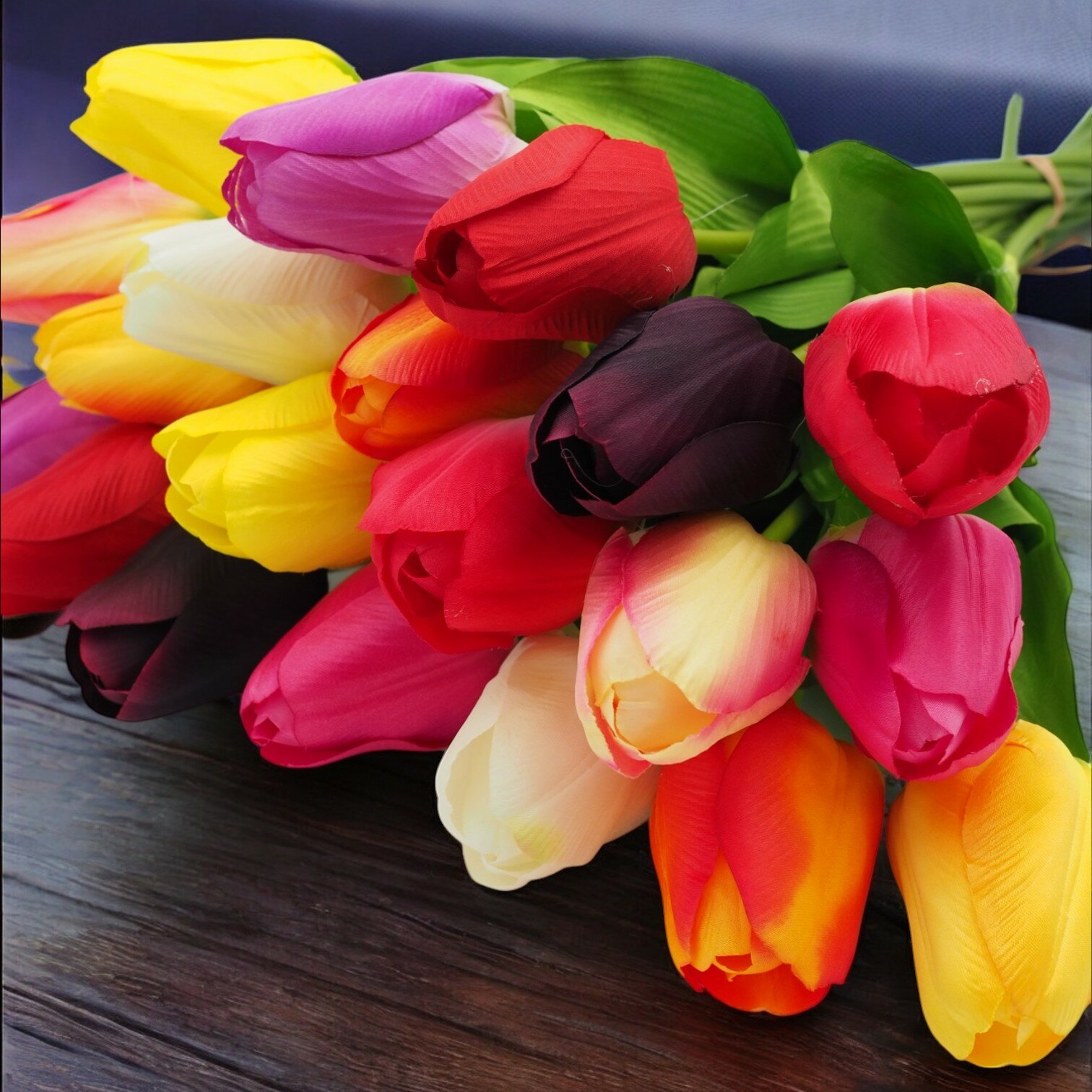 Купить Цветы Тюльпаны (CV1) декоративные, искусственные, интерьерные 30 штук, 60см, разноцветный