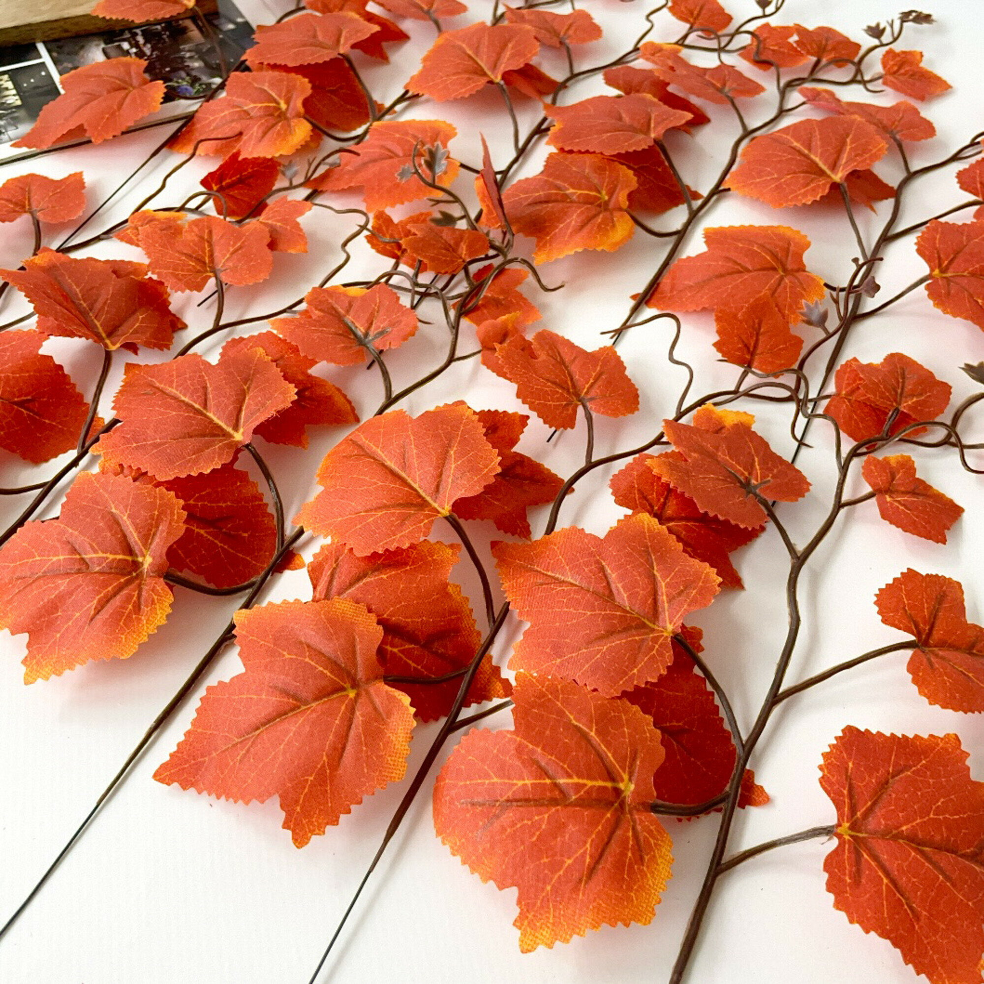 Кленовые листья, осенние, искусственные, Оранжевые, лиана 2,35 метра, 3 штуки