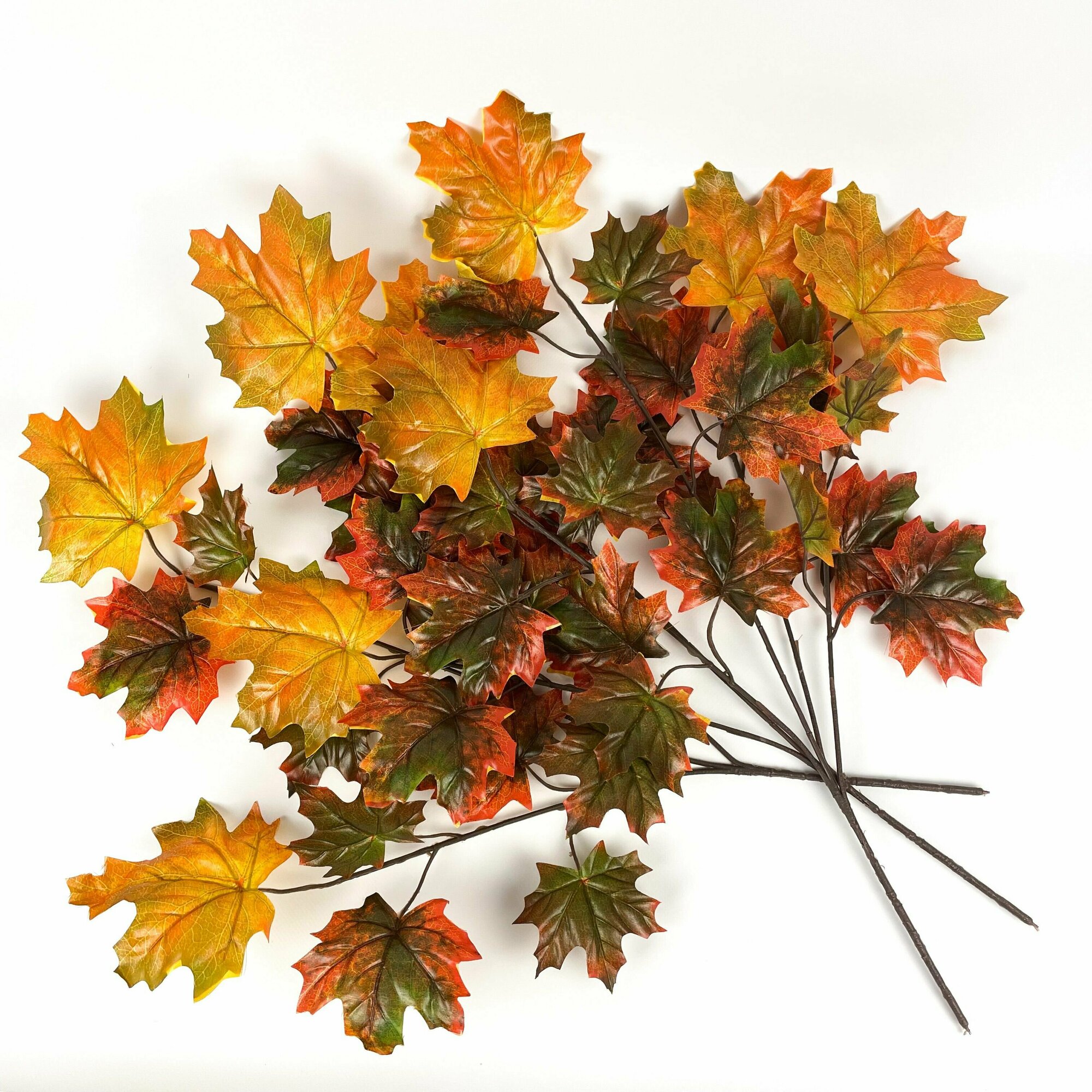 Кленовые листья искусственные на ветке, на проволоке, 34 см, осенние листья 3,5 - 7 см, 10 веток