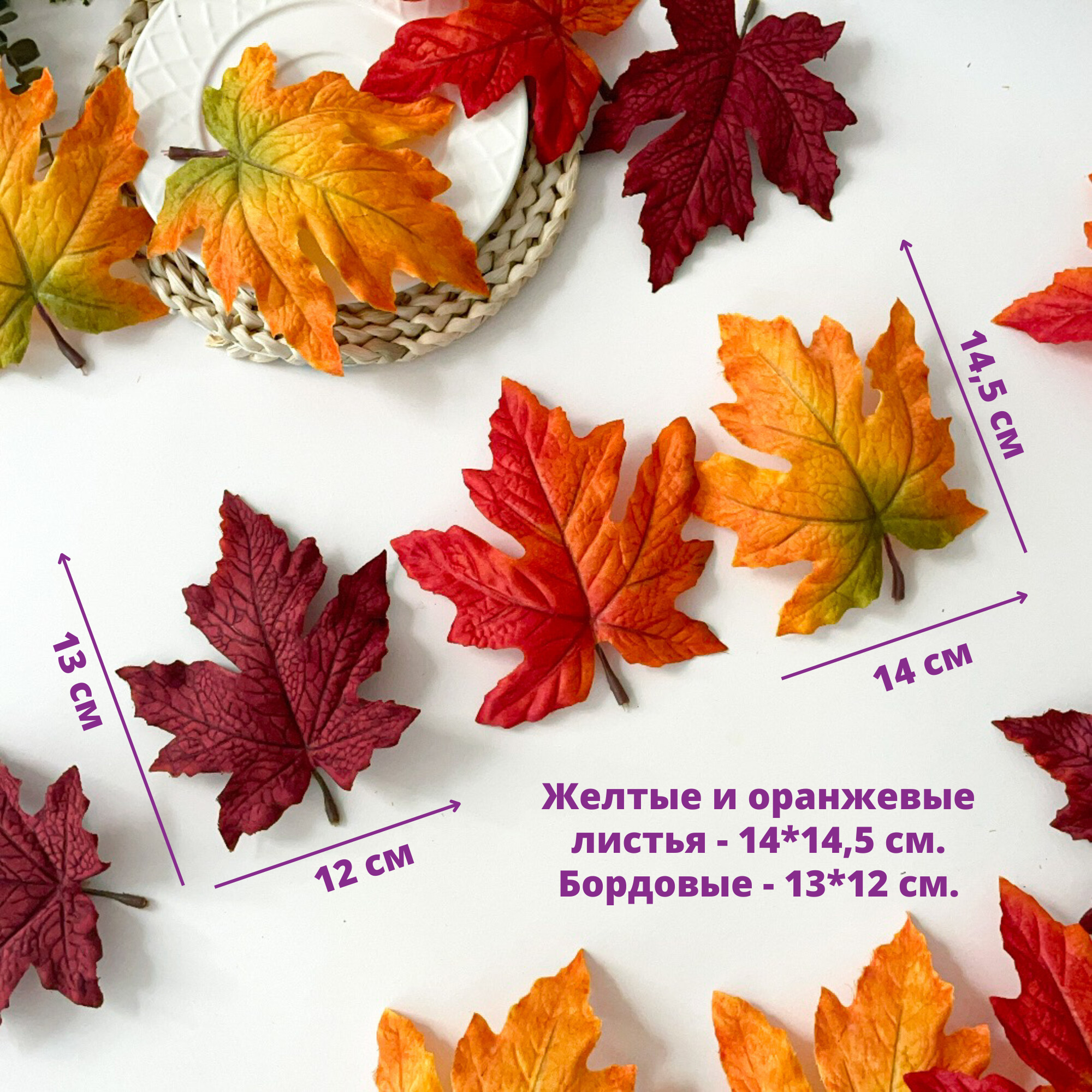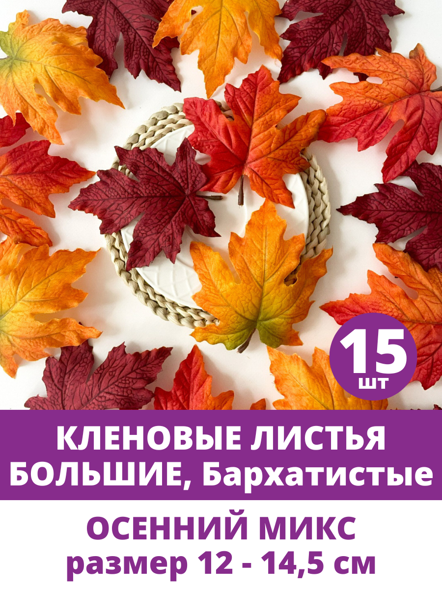 Купить Кленовые листья искусственные, Большие 12-14,5 см, осенние, для рукоделия и декора, 15 шт в наборе